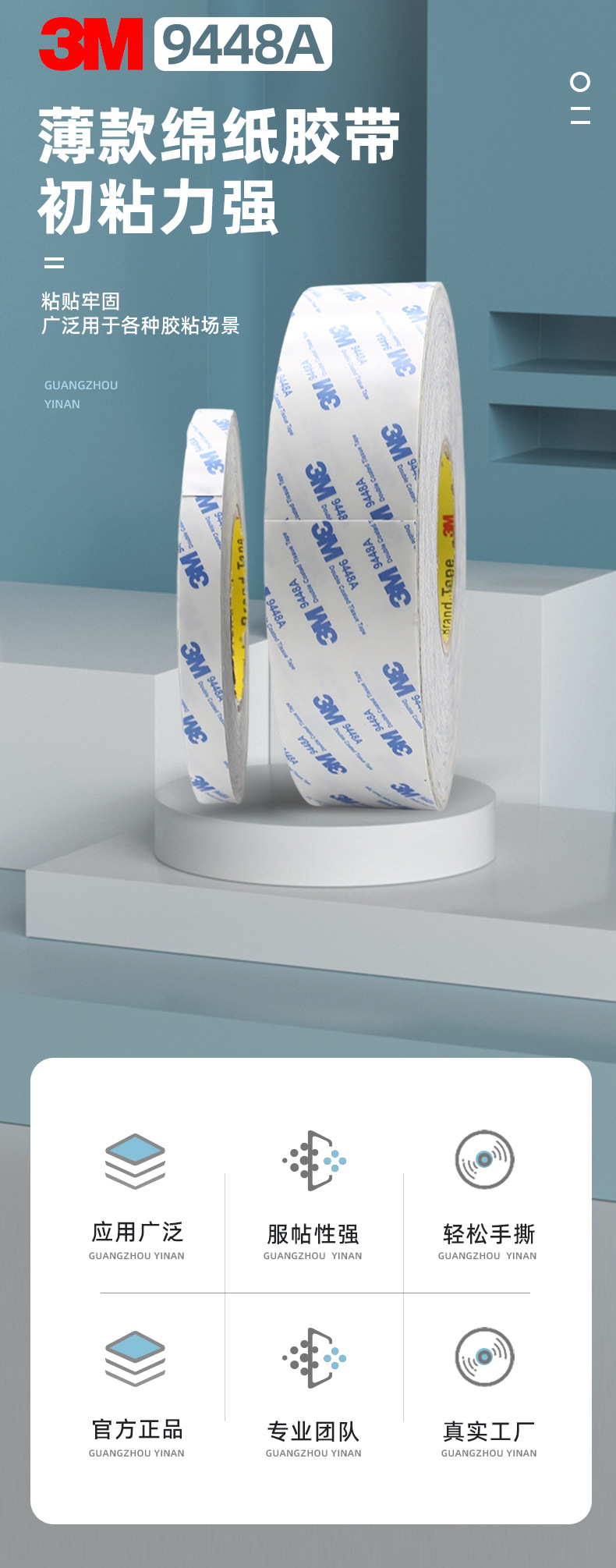 3m9448a强粘耐高温EVA泡棉双面胶 纸盒衣服织唛粘贴防水3m双面胶