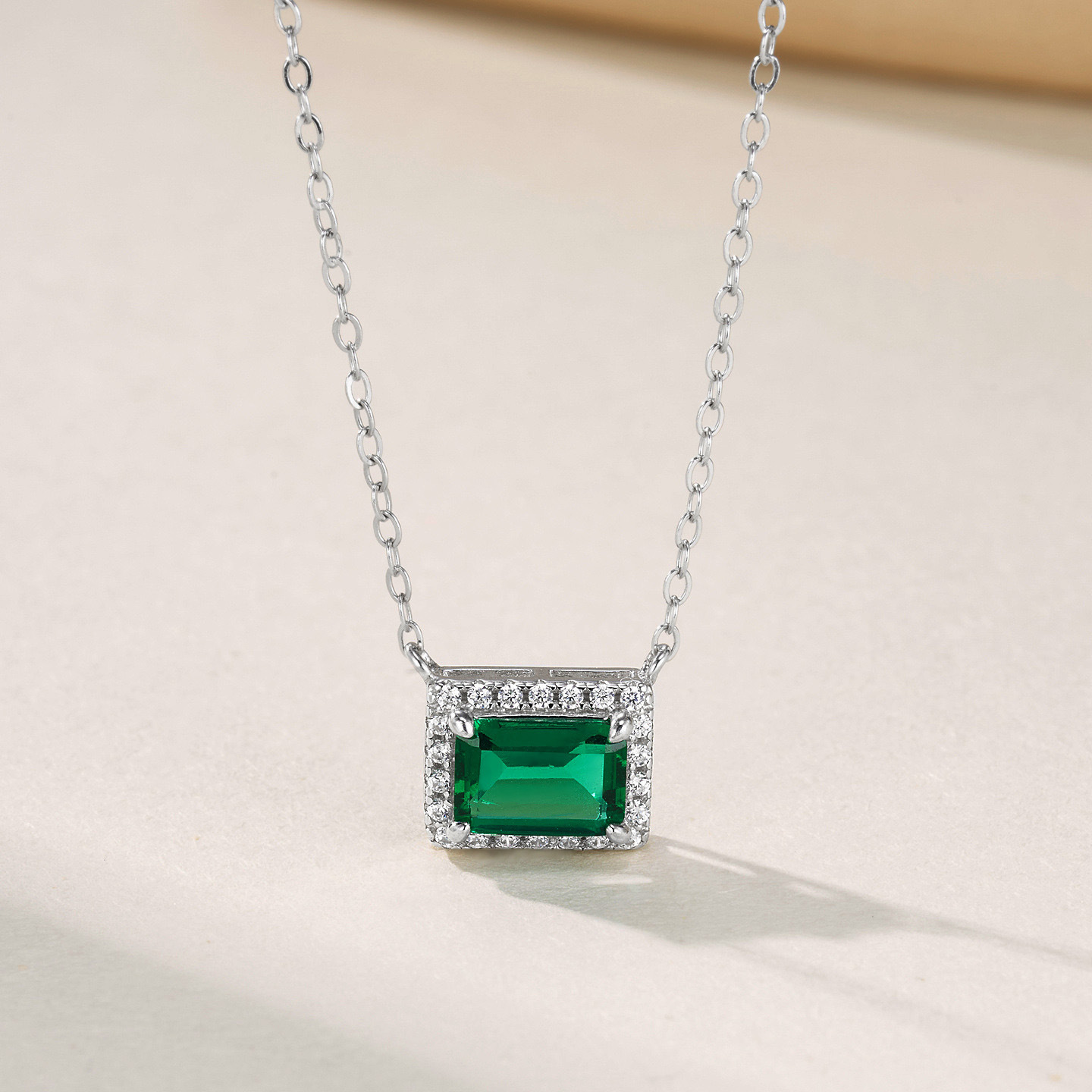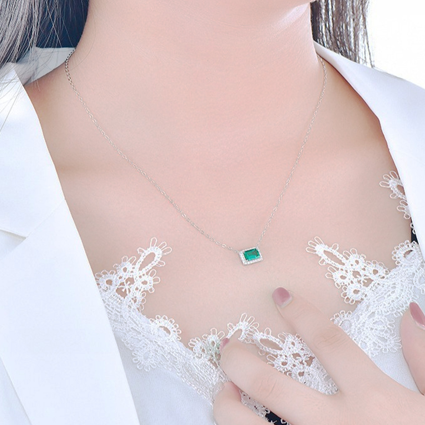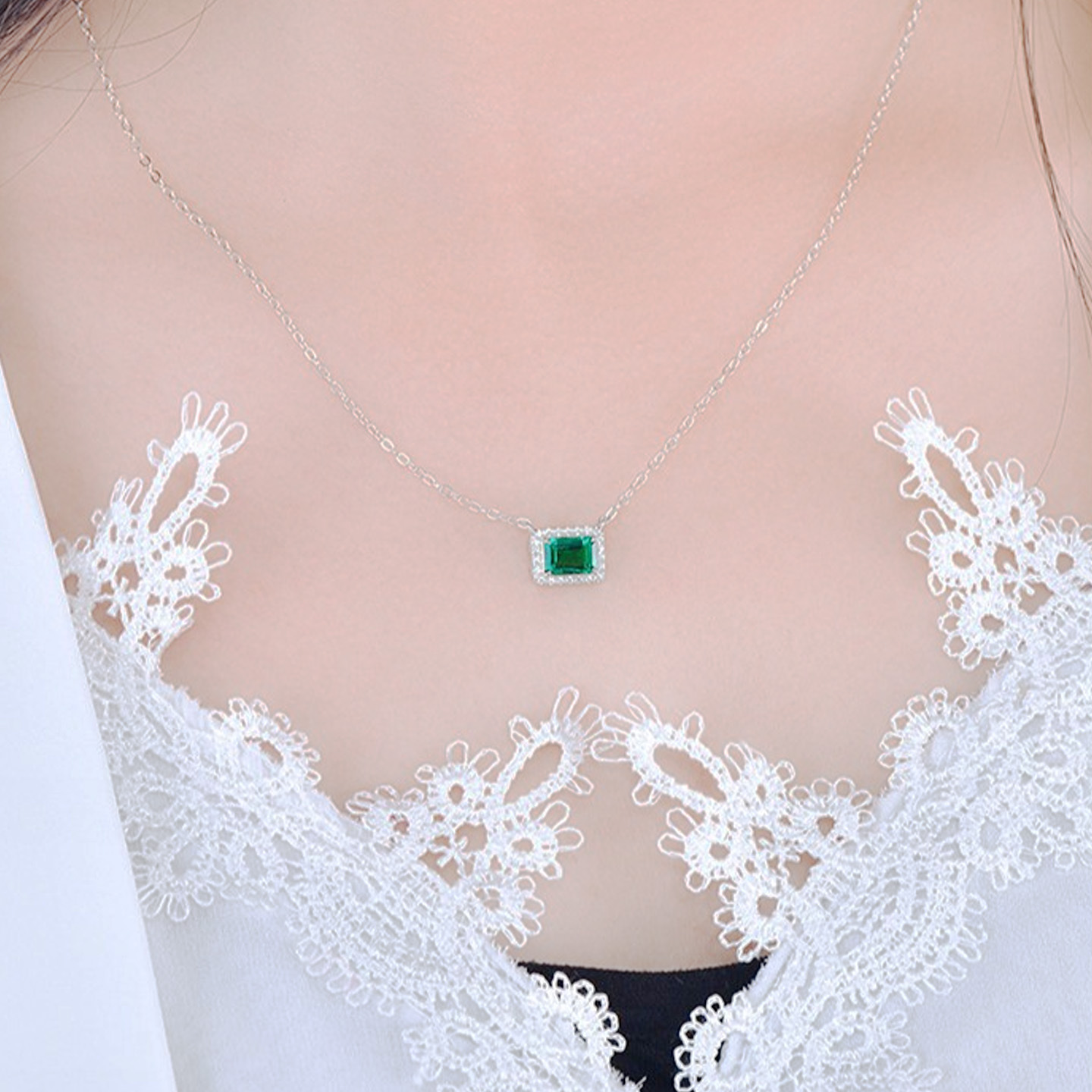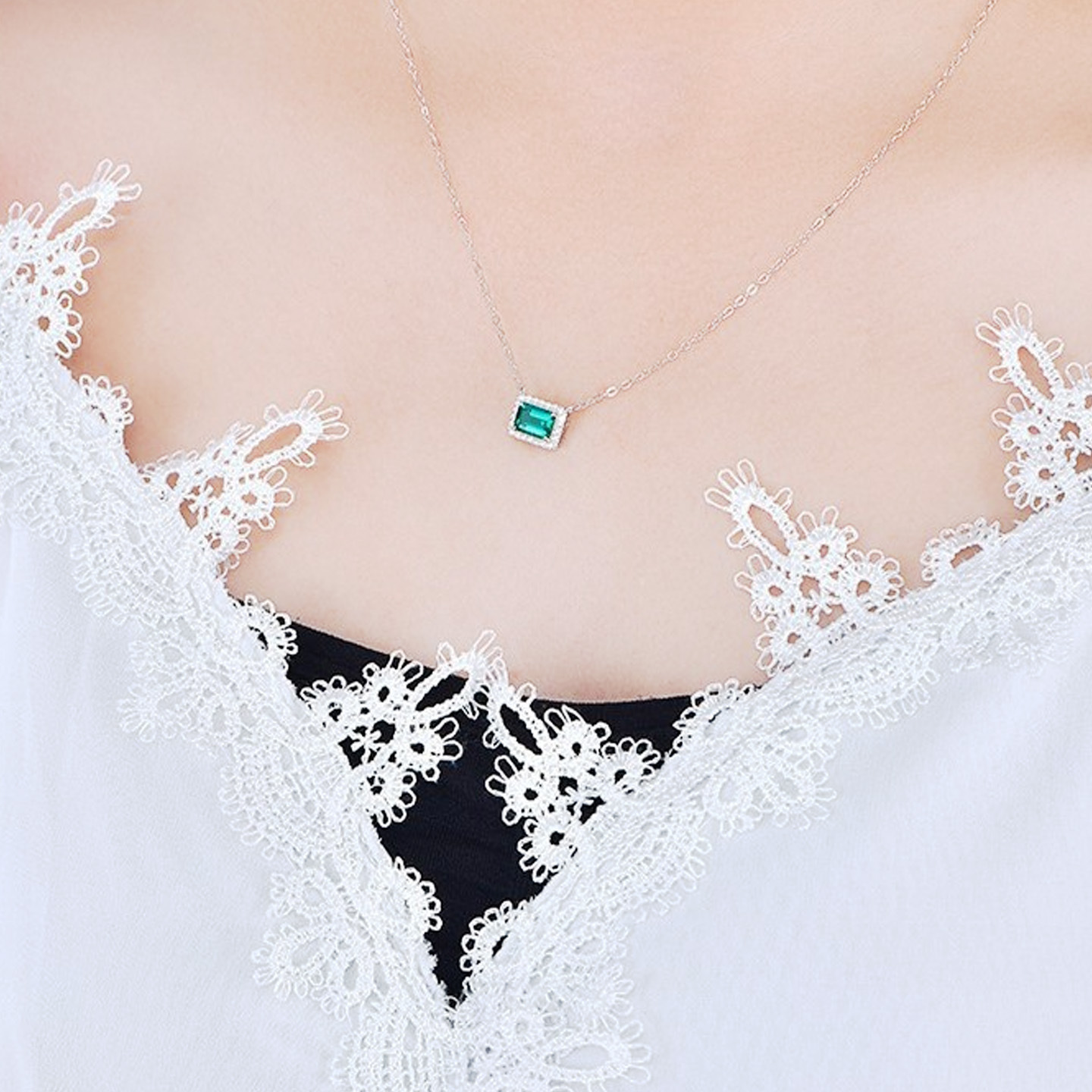 Чжоу Хэнфу Ювелирные изделия S925 Серебряный Изумруд 2024 Новый трансграничный драгоценный камень маленький квадрат ожерелье женщина