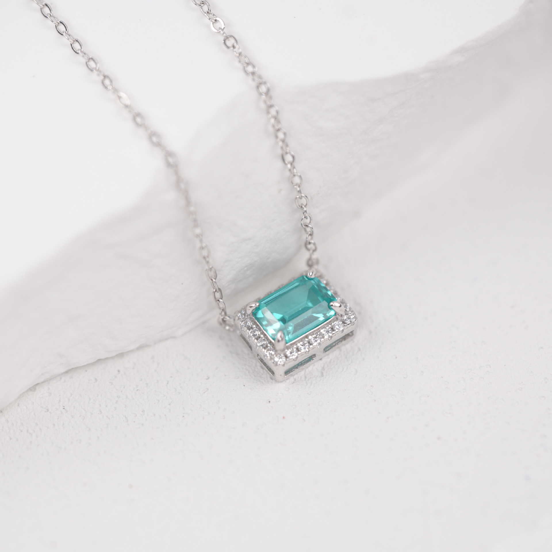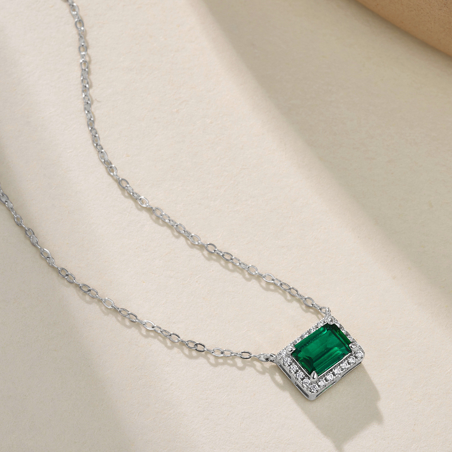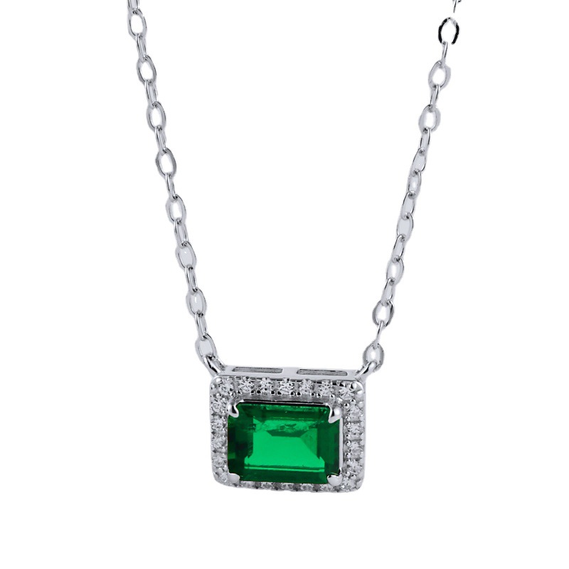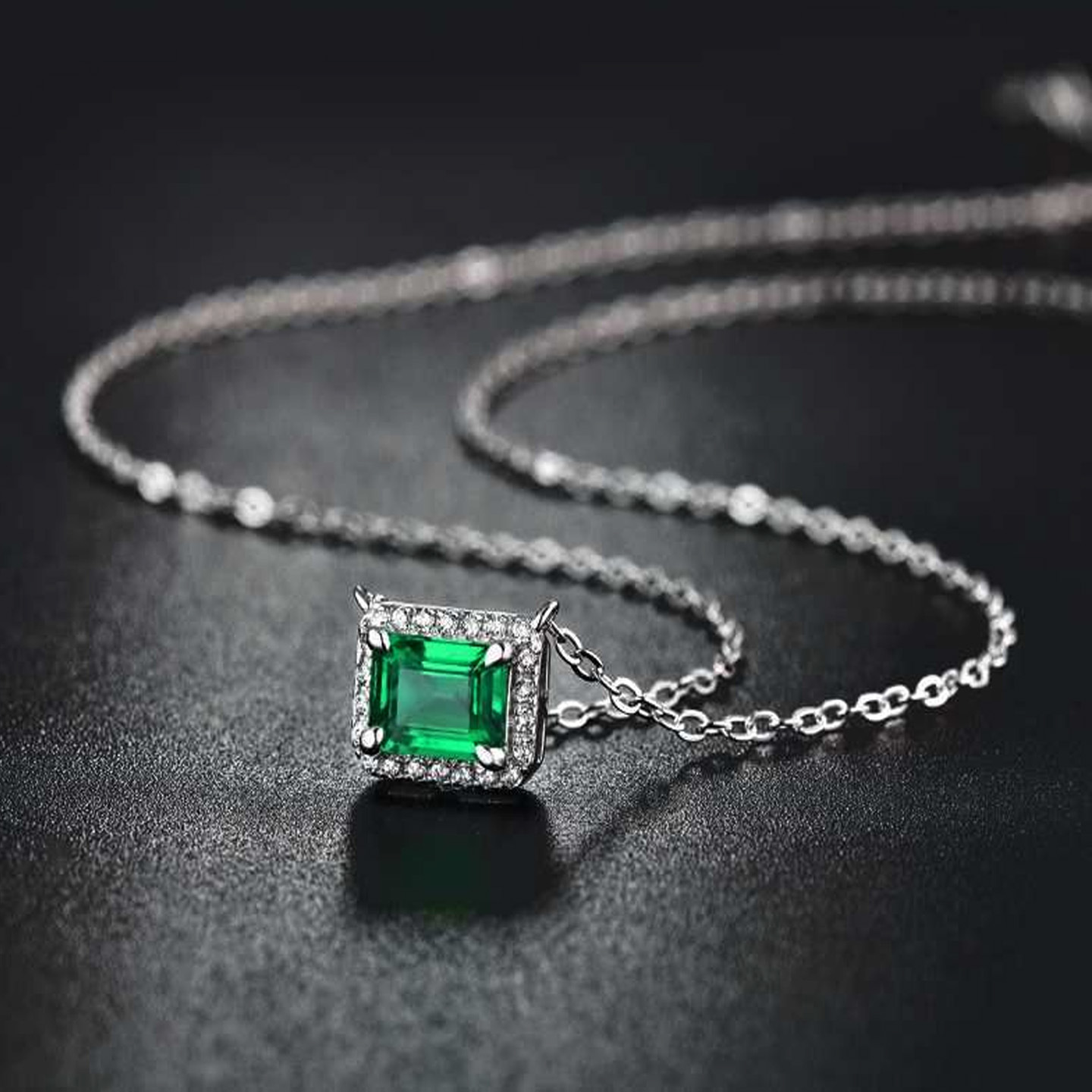 Чжоу Хэнфу Ювелирные изделия S925 Серебряный Изумруд 2024 Новый трансграничный драгоценный камень маленький квадрат ожерелье женщина