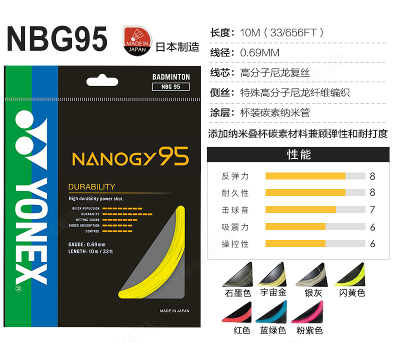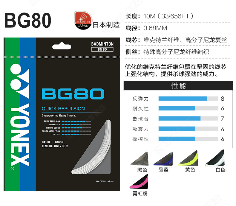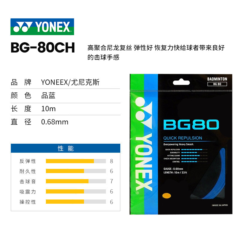 Струна для бадминтона YONEX — это высококачественная, эластичная и долговечная продукция, модели BGAB/BG65/BG80/XB63/BG66, оригинальная CH.