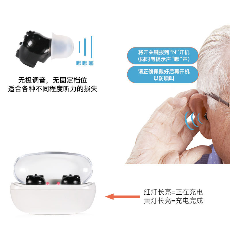 厂家助听集音器充电款智能降噪CIC助听器配件老人声音放大器批发