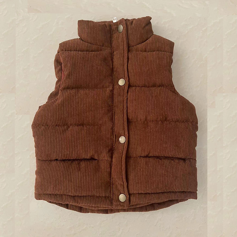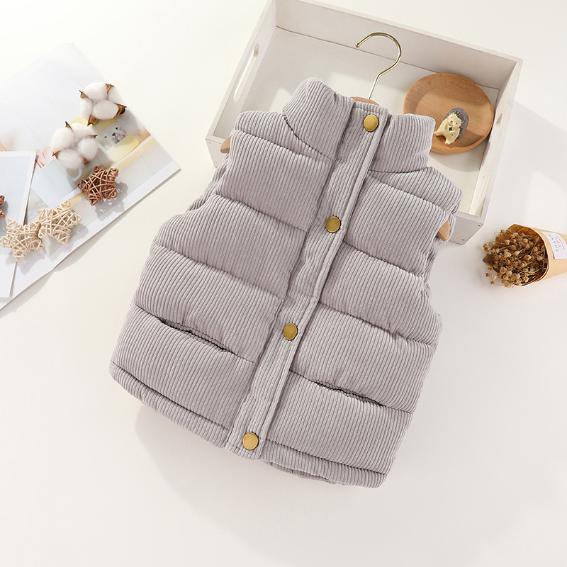 Детский хлопковый жилет, осенне-зимняя новая детская одежда, однотонный верхний жилет для мальчиков и девочек, вельветовый жилет с воротником-стойкой