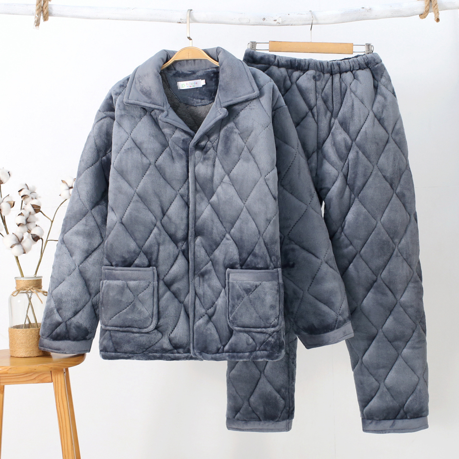 2025新款男士法兰绒抽条三层夹棉睡衣,快递发圆通和邮政,指定请备注