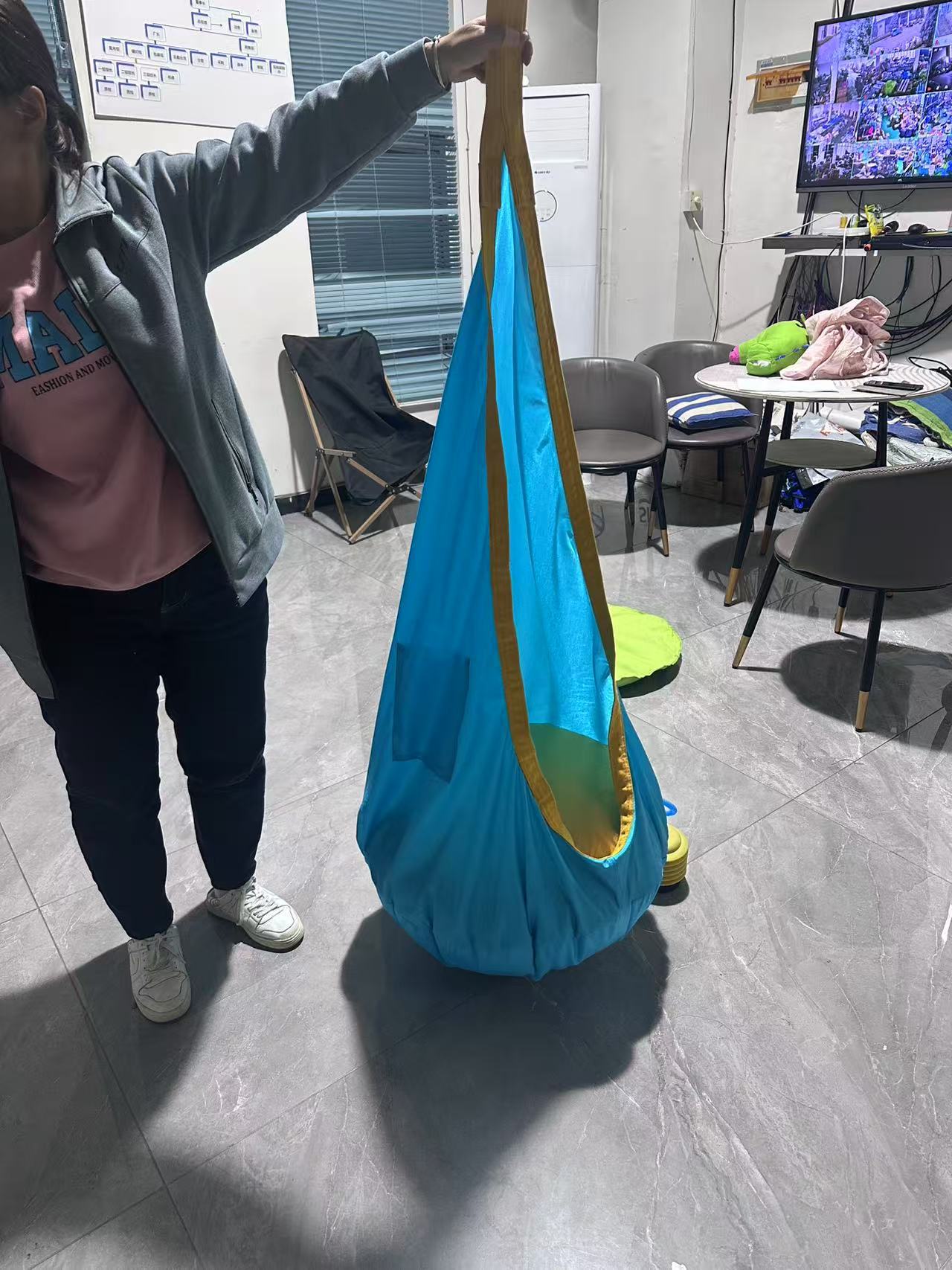 Детские тканевые качели для дома и улицы, подвесное кресло для детей из хлопкового полотна и нейлона с надувной подушкой, качели-гамак со светодиодной подсветкой