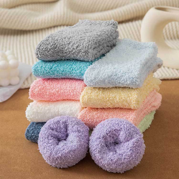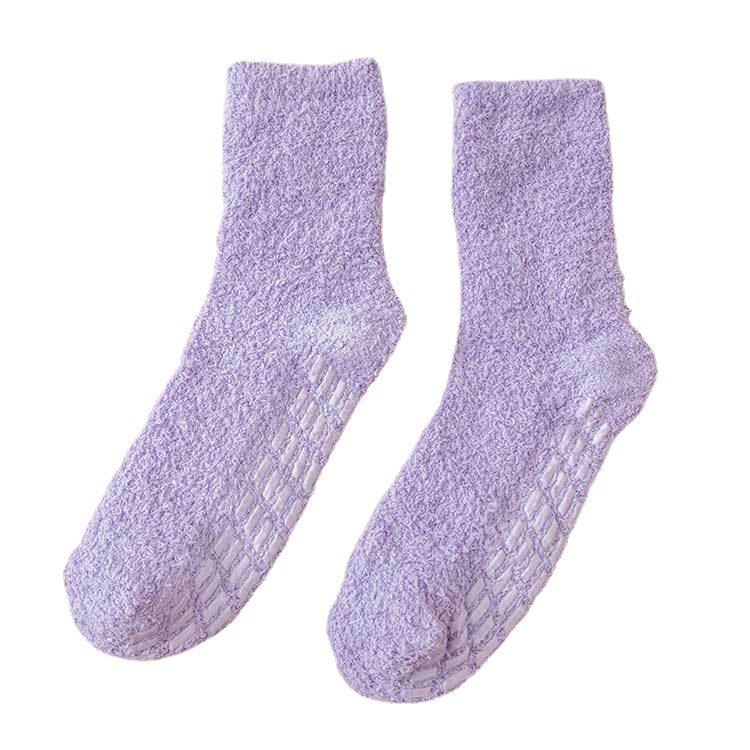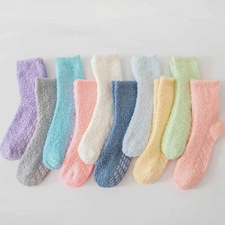 Осенние и зимние женские коралловые бархатные носки, однотонные нескользящие носки в горошек, теплые и удобные носки-полотенца, домашние носки-поло