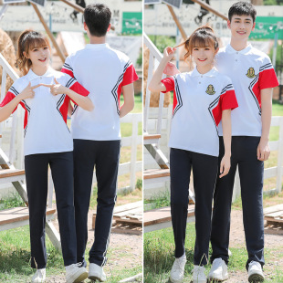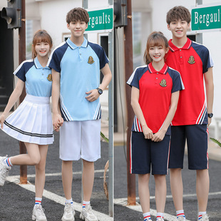 Летний красный новый комплект школьной формы из хлопка для учащихся начальной и средней школы, двухкомпонентный комплект с цветными блоками и короткими рукавами, повседневный спортивный стиль
