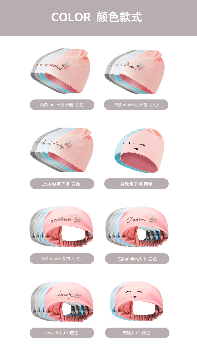 尊贵的顾客您好!我们店铺主营母婴用品批发,该链接(货号LAB-1)为月子帽与月子头巾LOVE款A款B款。LOVE款为lovelife字样,A款为正体字母店铺logo,B款为草体字母店铺logo。