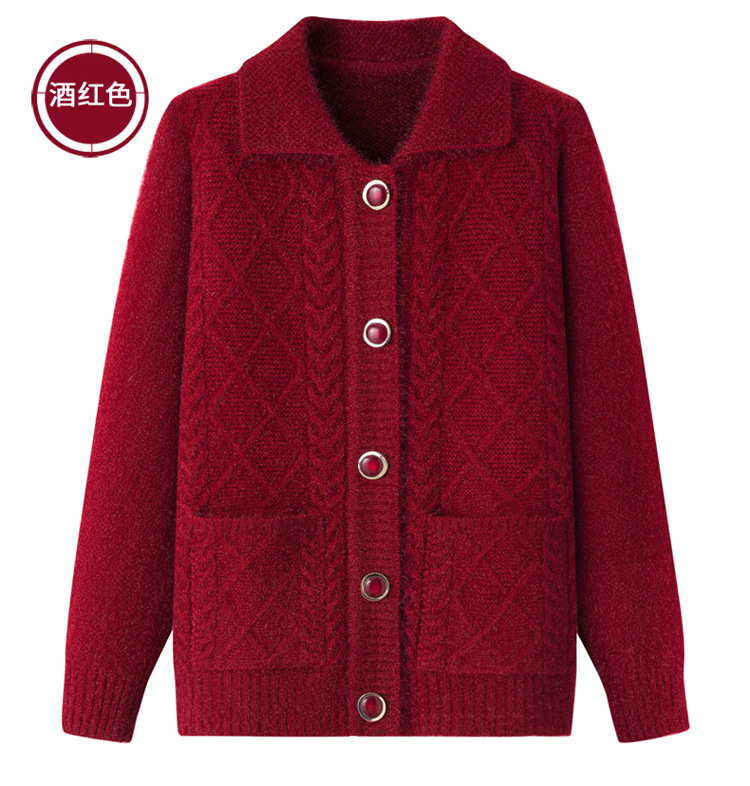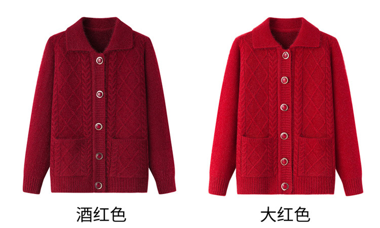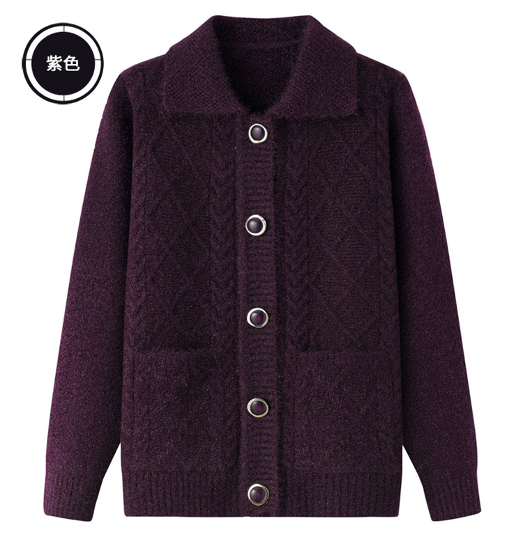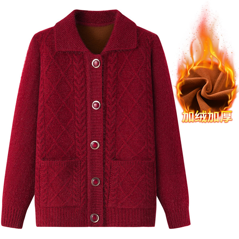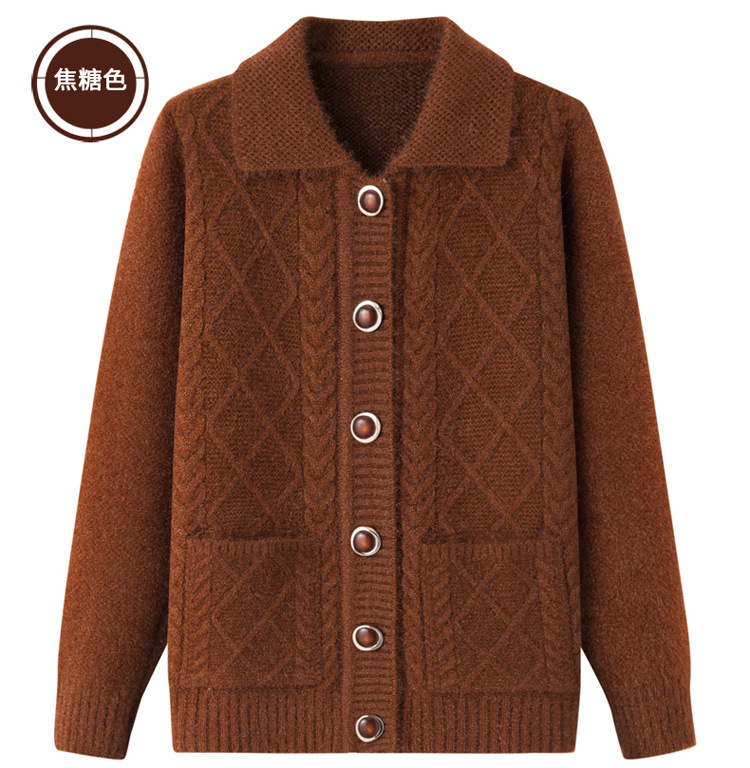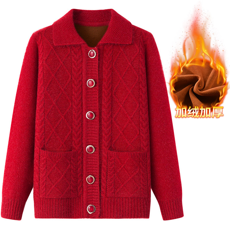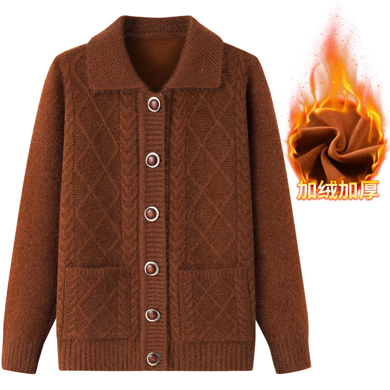 Осенне-зимнее пальто для пожилых людей Платье для бабушки Утолщенный вязаный свитер с лацканами для матери Кардиган Свитер для средних и пожилых людей Весеннее платье