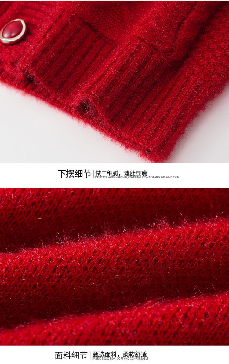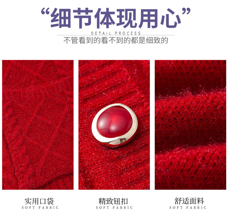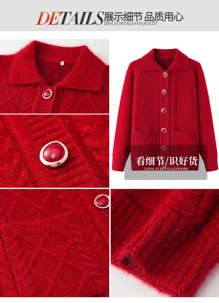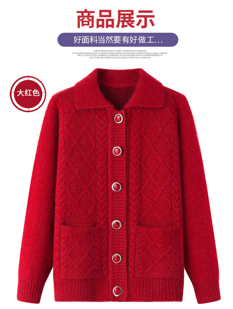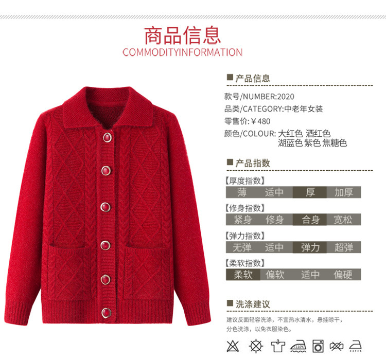 Осенне-зимнее пальто для пожилых людей Платье для бабушки Утолщенный вязаный свитер с лацканами для матери Кардиган Свитер для средних и пожилых людей Весеннее платье