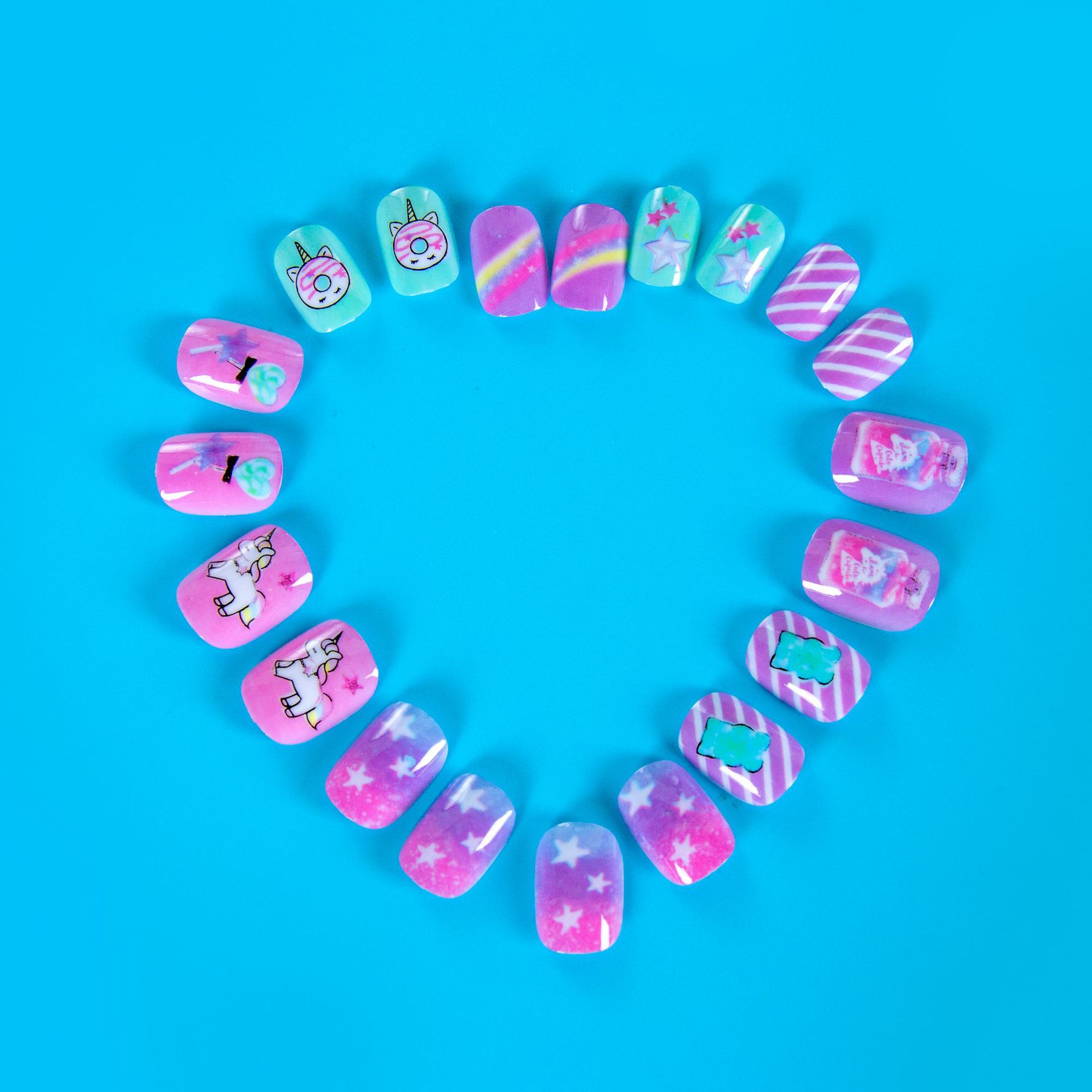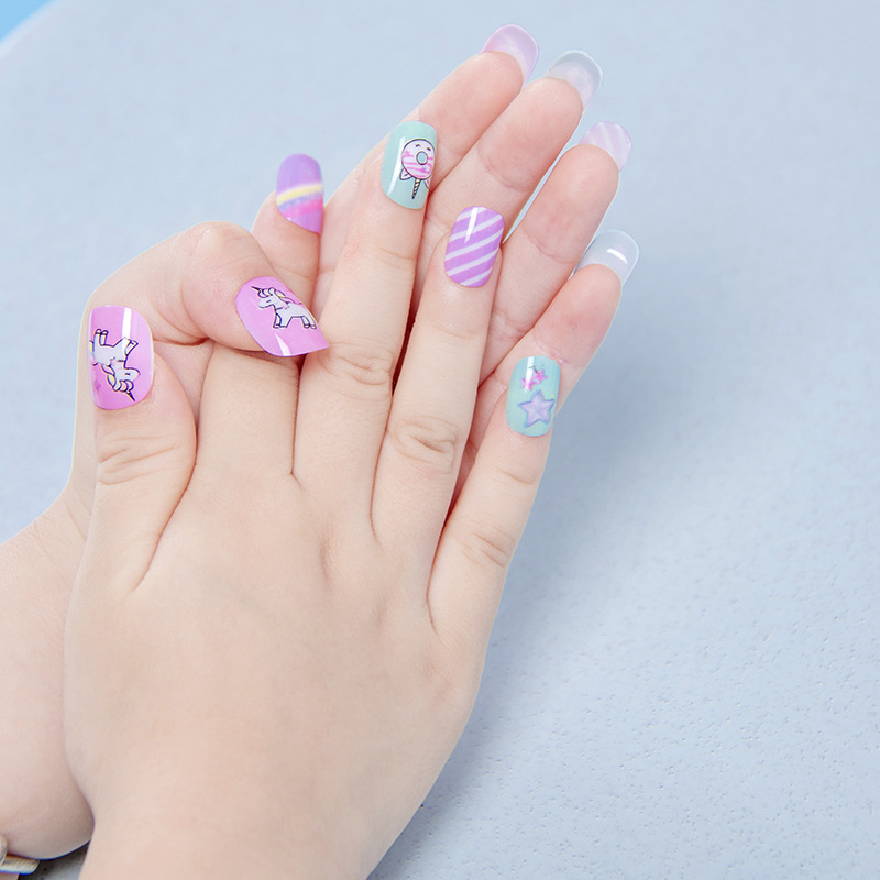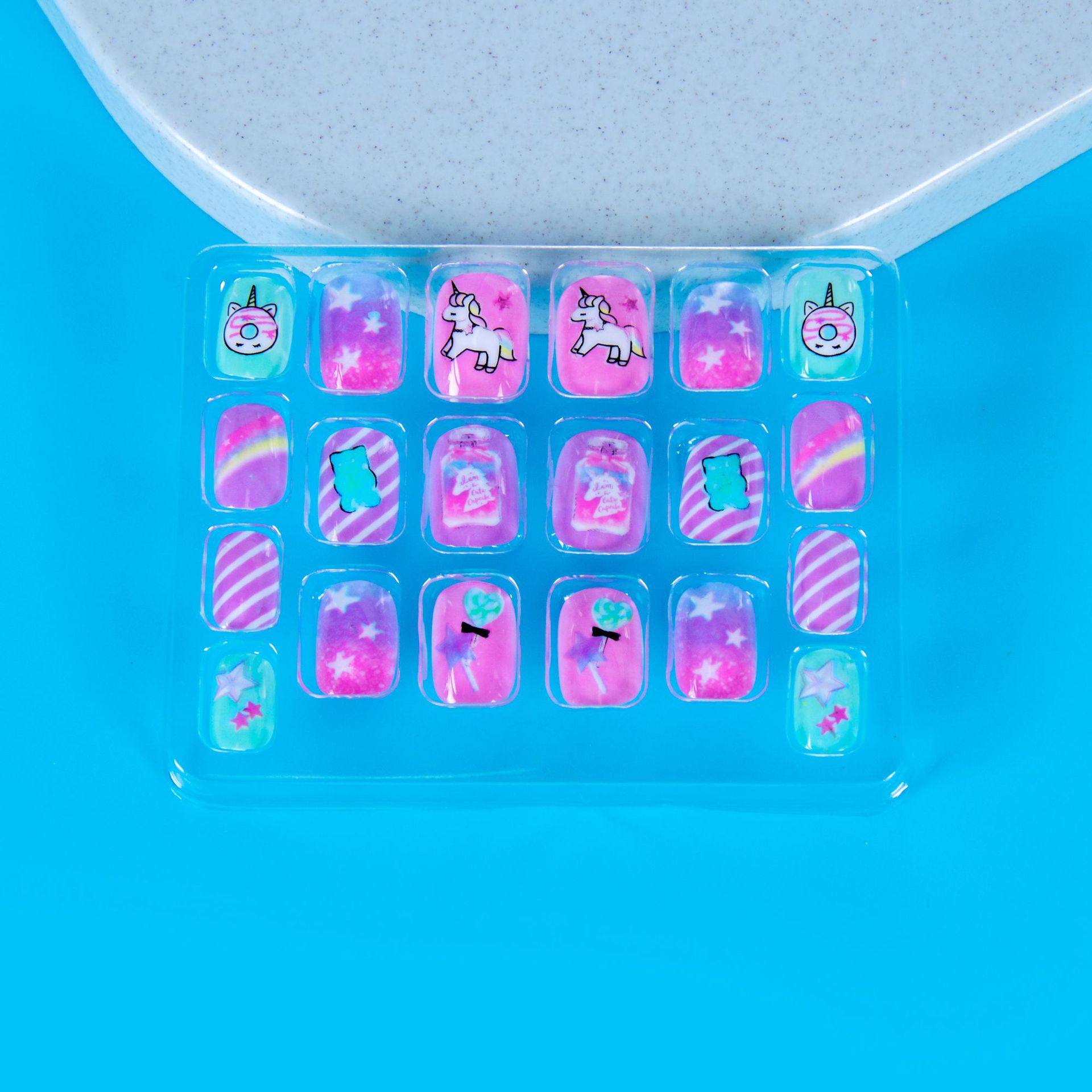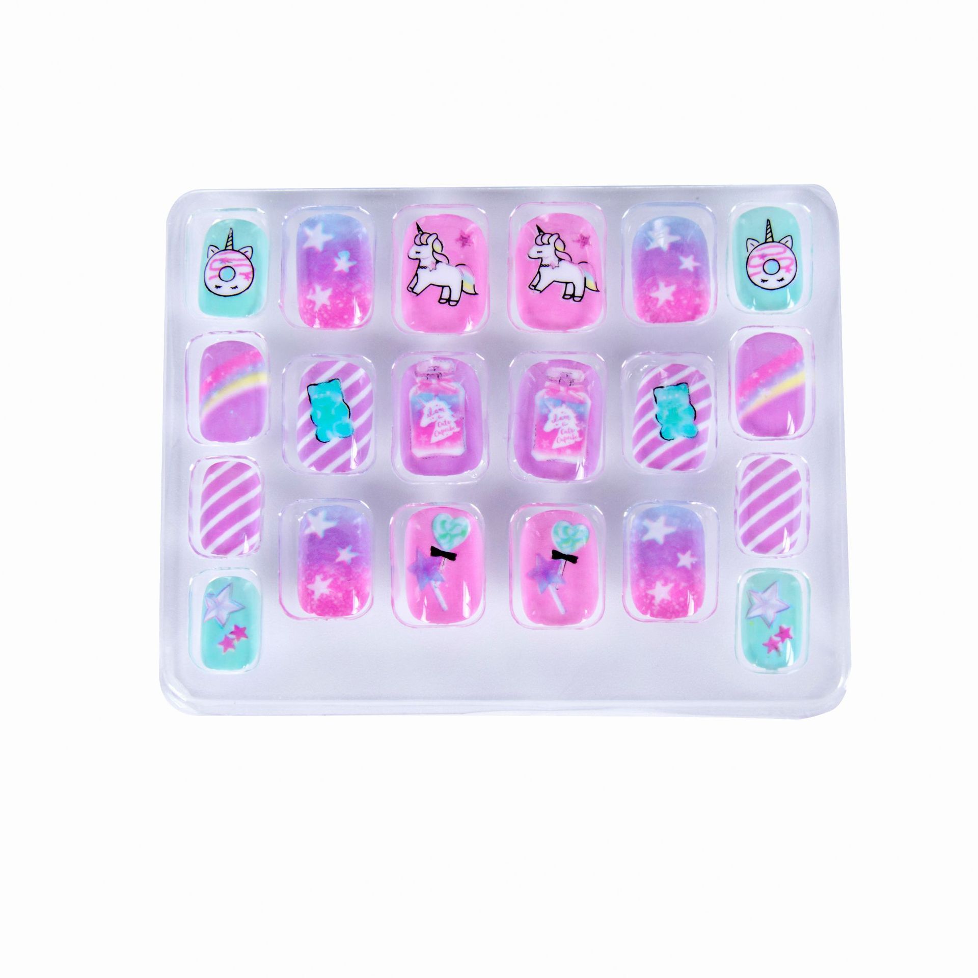 Набор из 20 наклеек для ногтей с единорогами, готовые накладные ногти с клеевой основой, детские мультяшные накладные ногти для носки