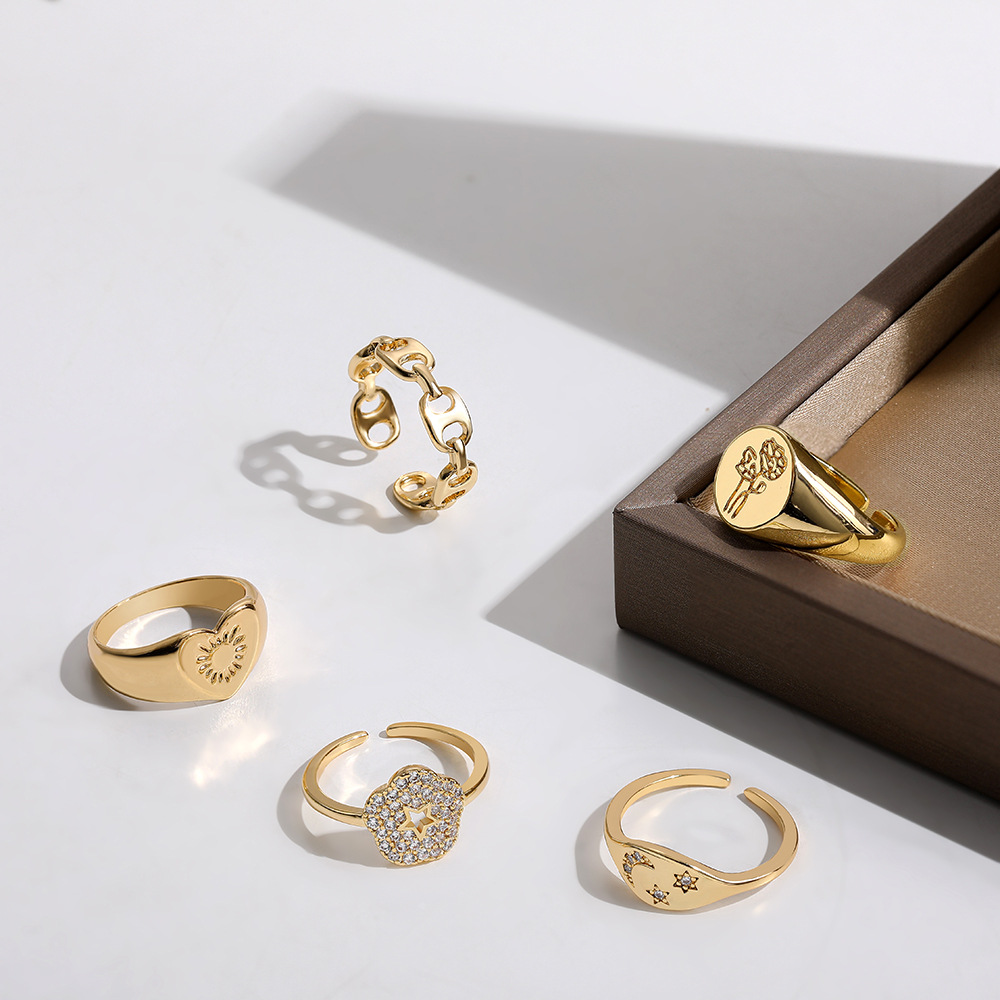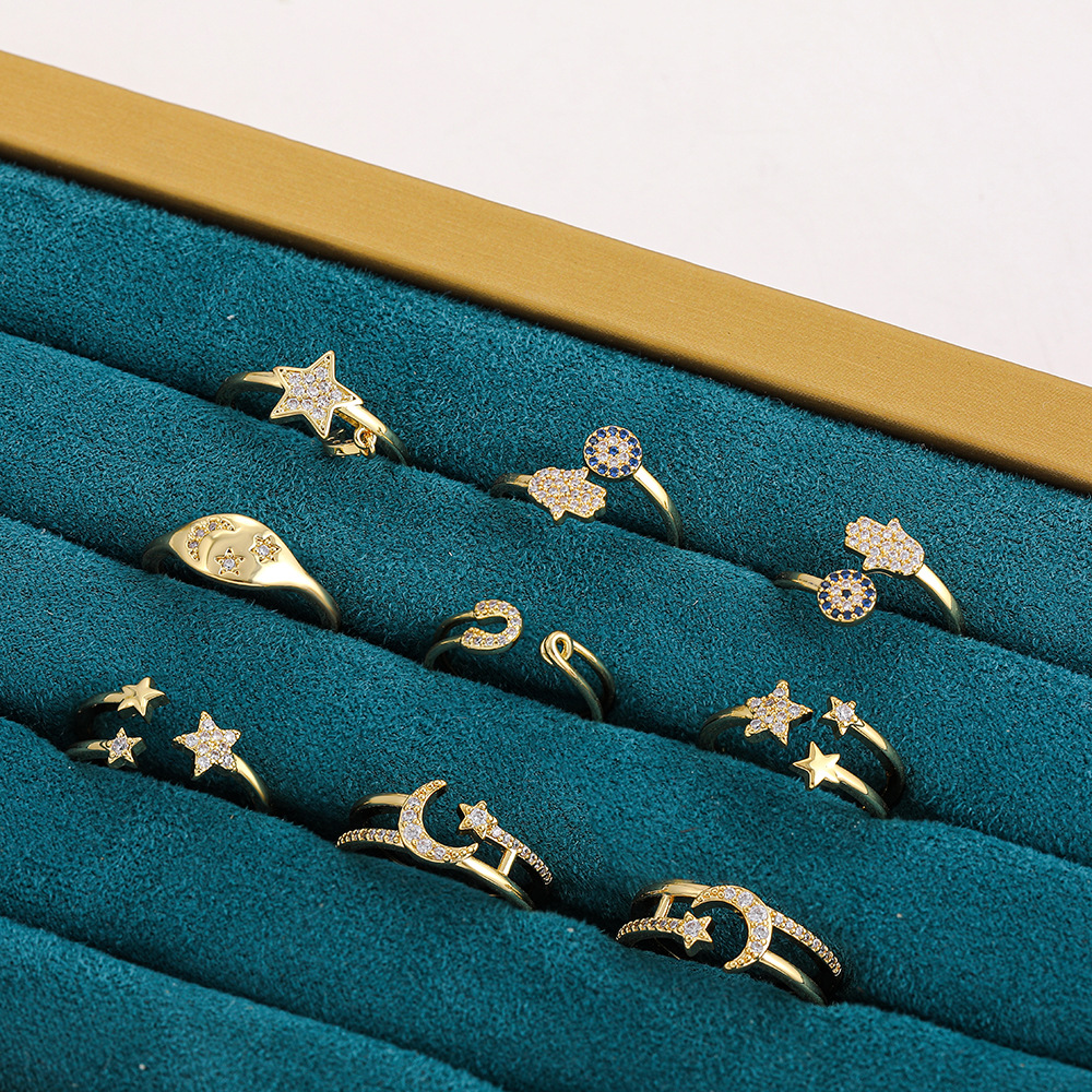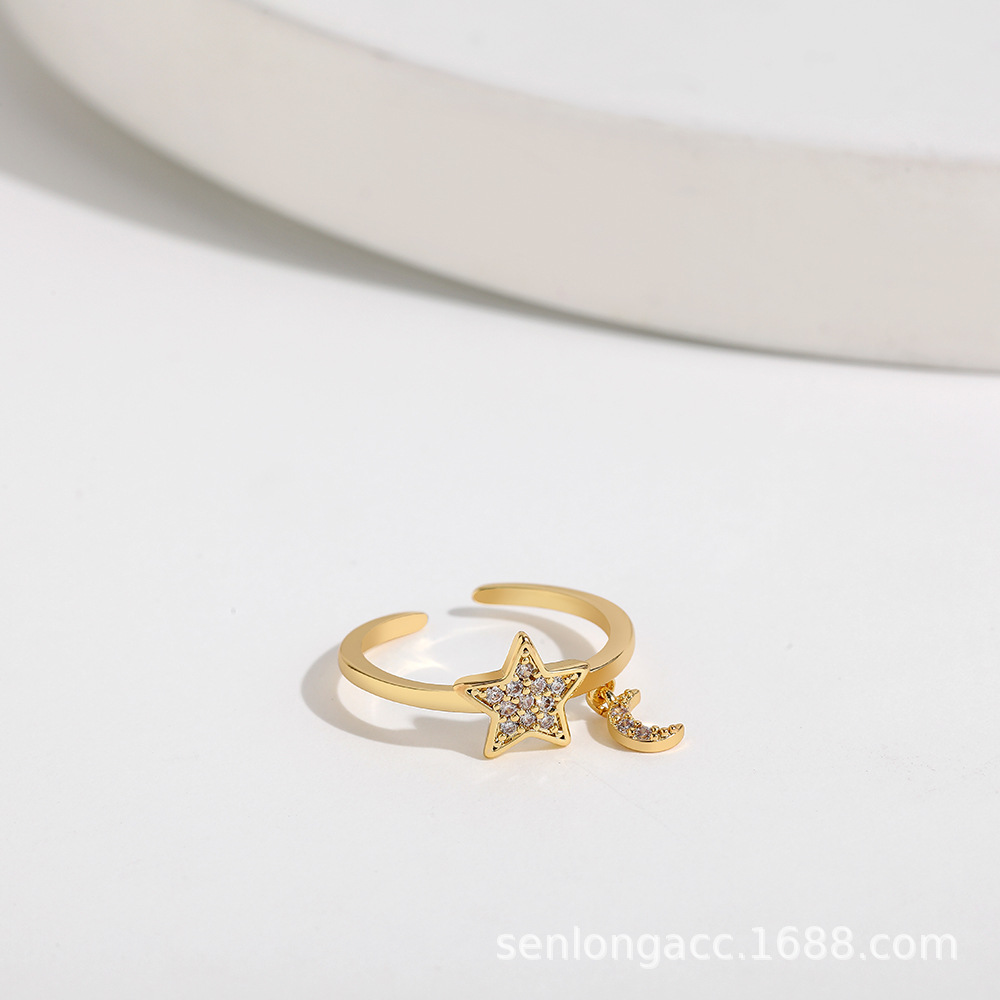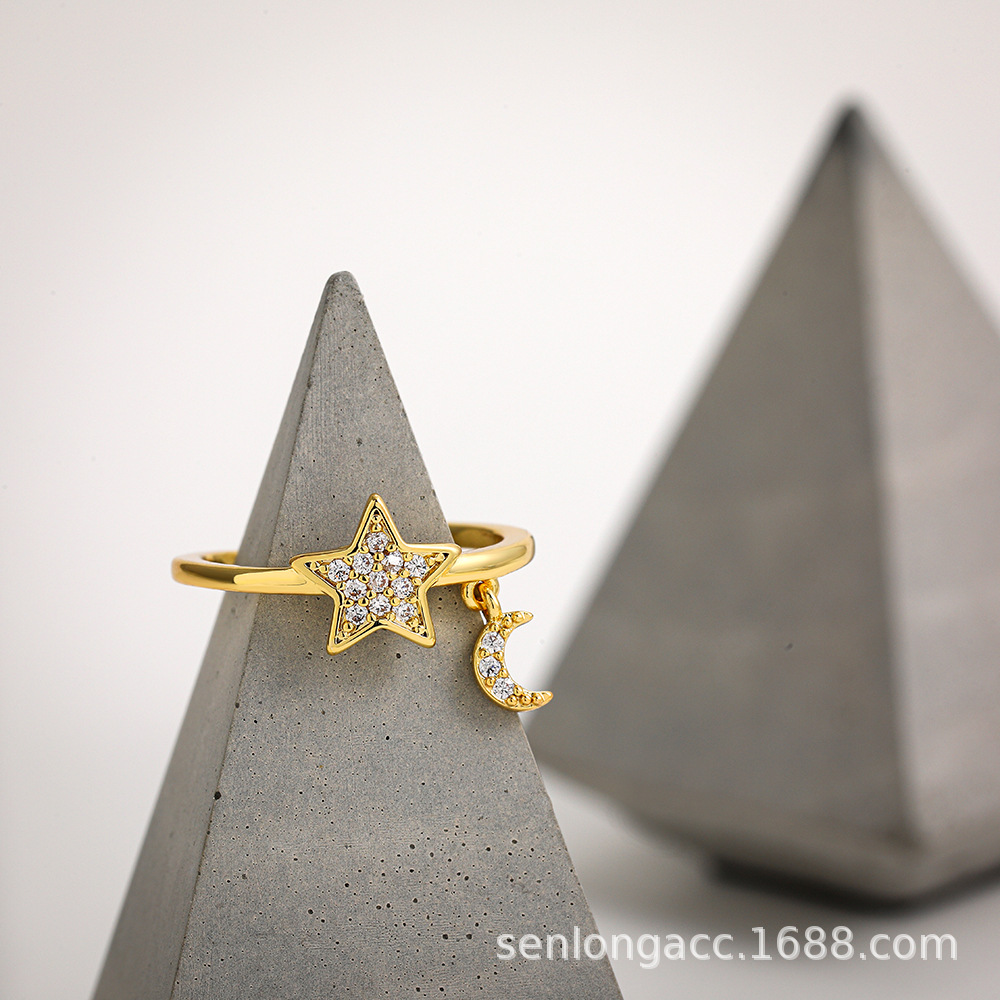 AliExpress Европейское и американское Новое Двухслойное U-образное кольцо из сплава в форме звезды и Луны модное индивидуальное кольцо с темпераментом