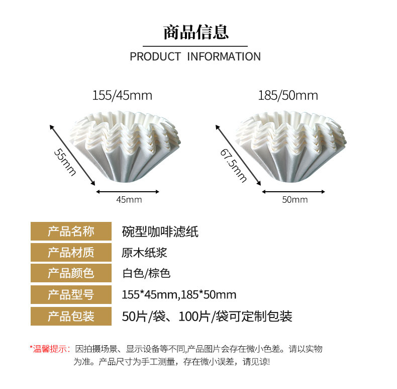 Фильтр-бумага для кофе в форме чашки, 155x45 мм, на 1-2 порции, 50 шт./упак., для заваривания вручную, фильтр-чашка в стиле оригами