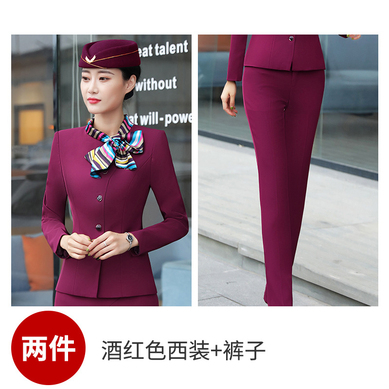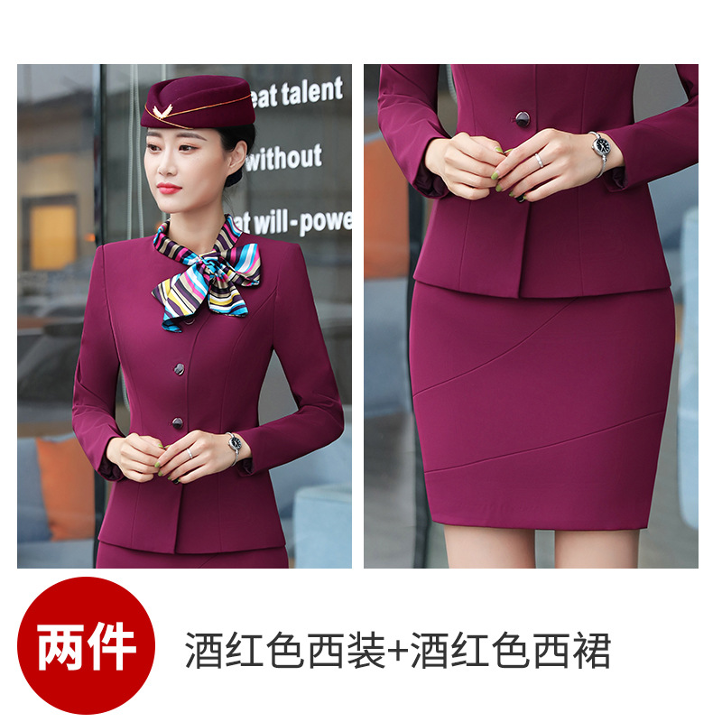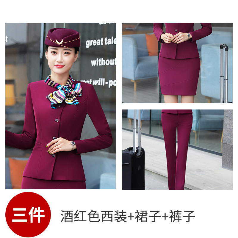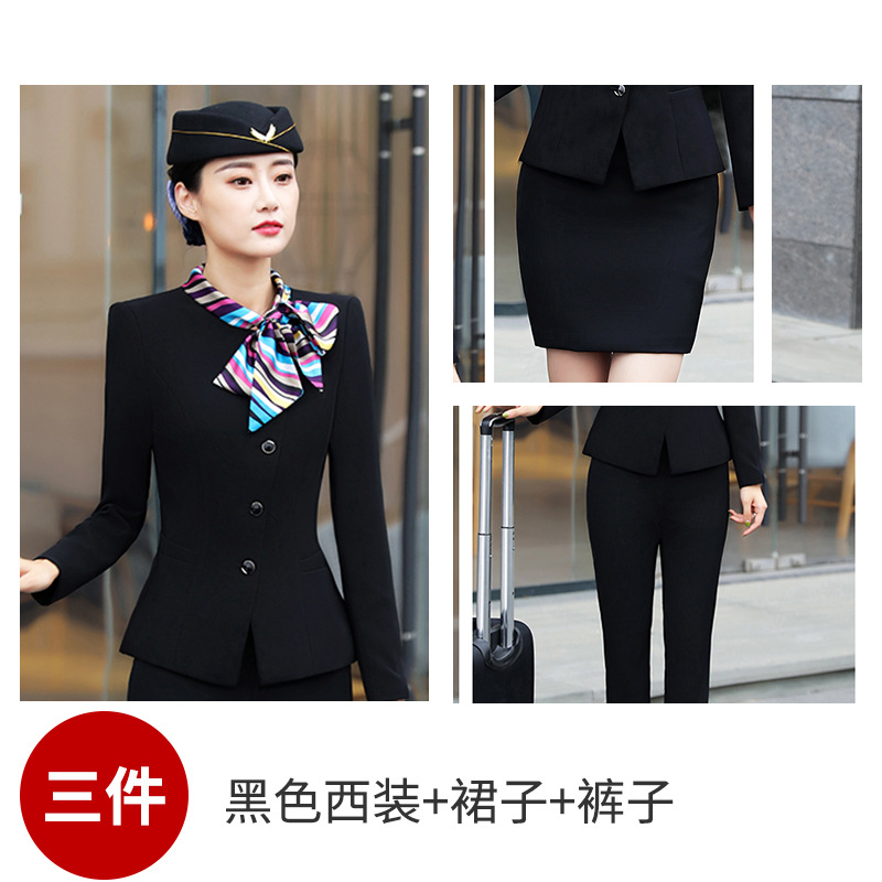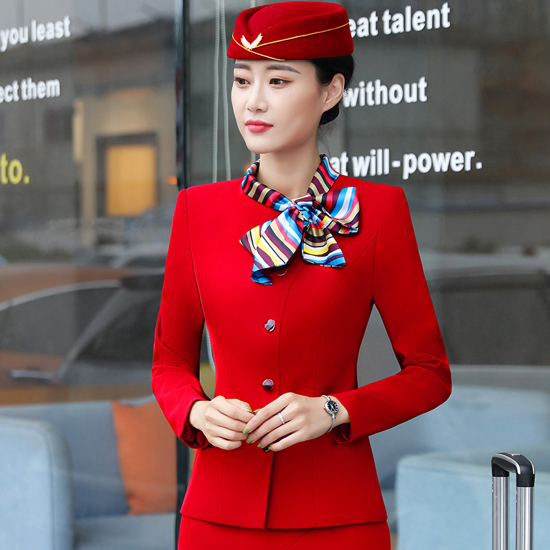 Костюм стюардессы для женщин, осенне-зимняя униформа для сотрудников отеля и косметологов, элегантный костюм с длинным рукавом и бантом