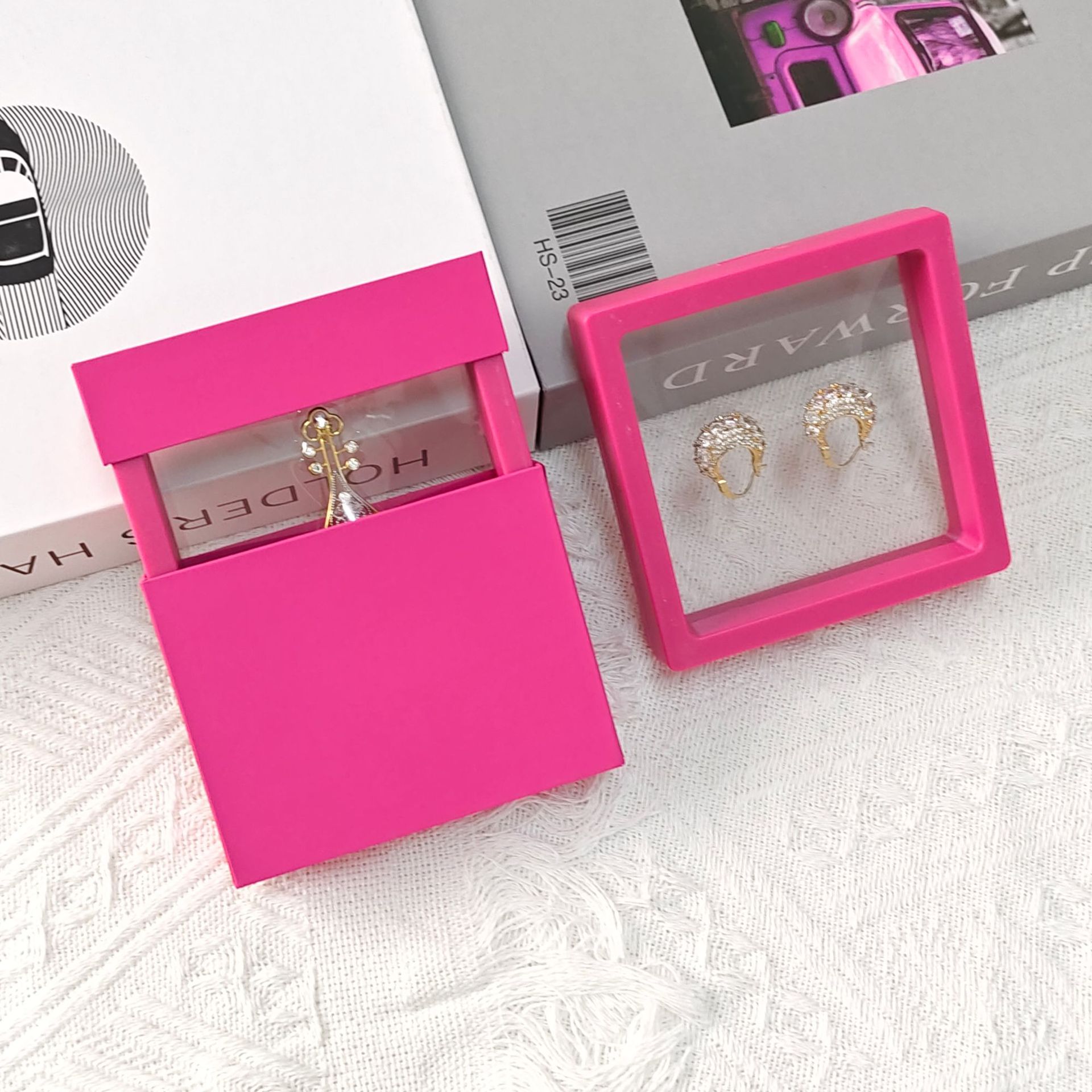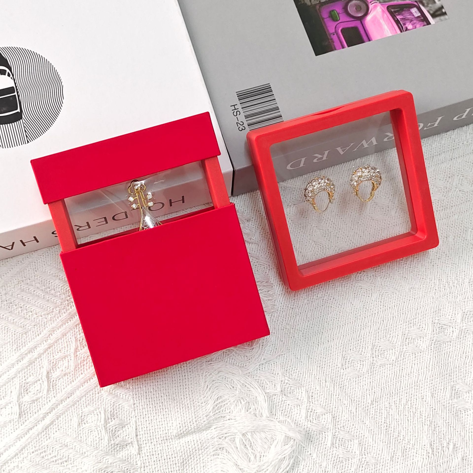 Цветная прозрачная коробка дисплея фильма PE подвеска упаковывая коробка для хранения ожерелья кольца ювелирных изделий в наличии оптом