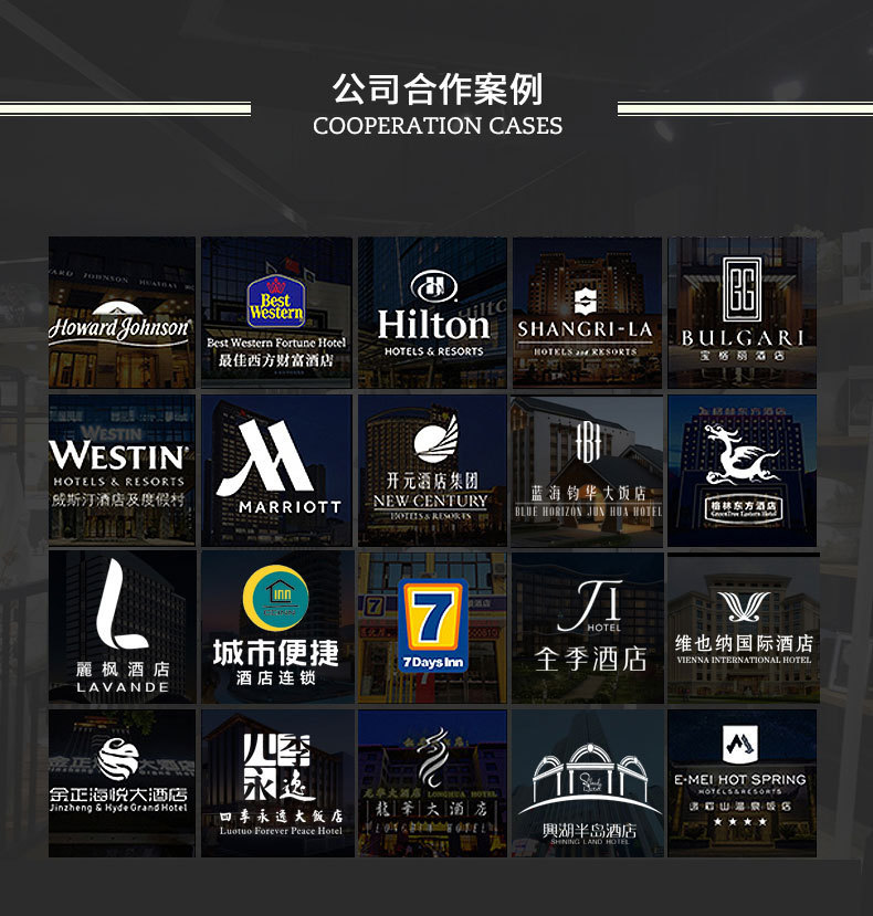 40S*40S (экономичный и бюджетный отель); 60S*40S (трехзвездочный отель); Двойной спрей 60S*60S (четырехзвездочный отель); 60S*60S одиночный спрей (четырехзвездочный отель); 60S*80S (пятизвездочный отель); 80S*80S (суперпятизвездочный отель)