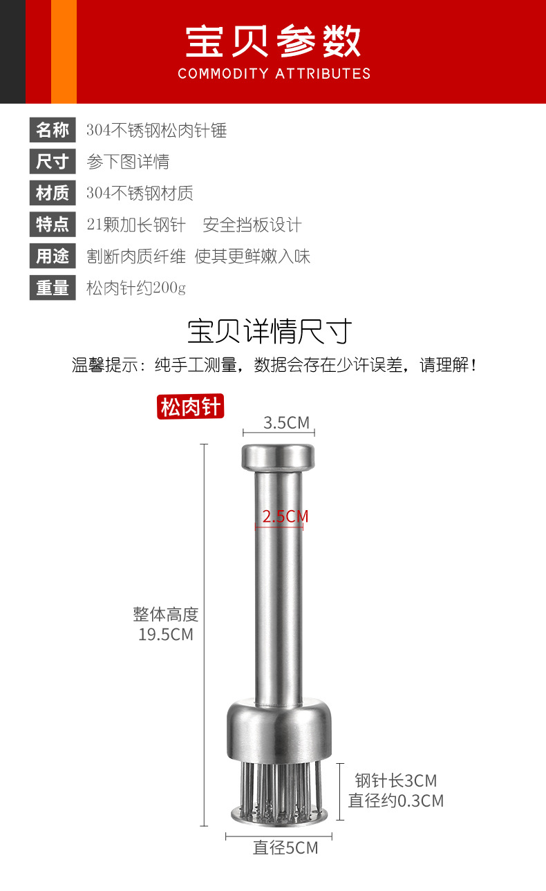 Оптовая Продажа с фабрики 304 нержавеющая сталь сосновая игла бытовой рыхлый мясной молоток нежный мясной молоток сломанный сухожильный галстук Мясо Стейк кухонный инструмент