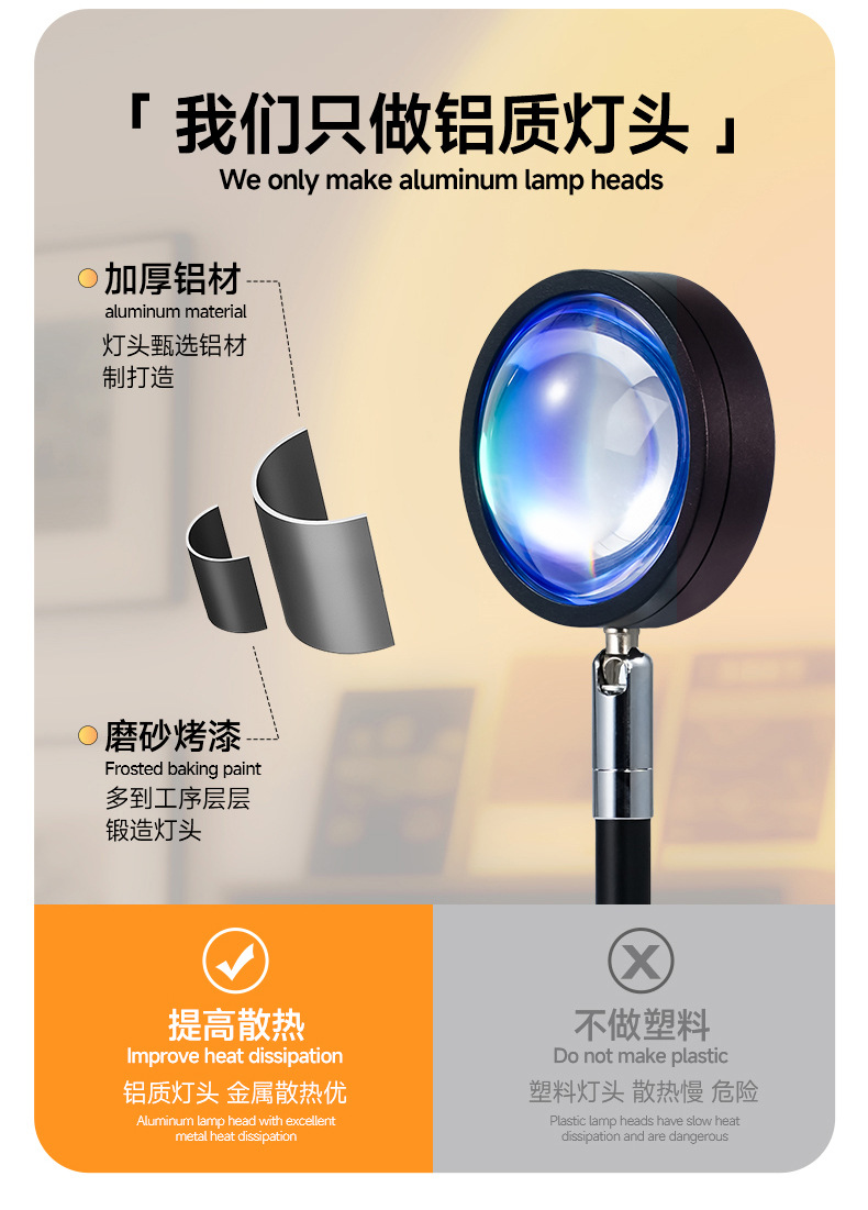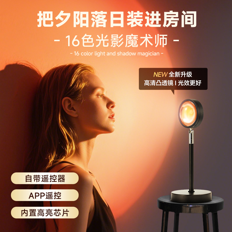 Лампа на закате Напольная креативная металлическая настольная лампа Закат светодиодная проекционная лампа Свет Роскошная настольная лампа в стиле ins Атмосферная лампа