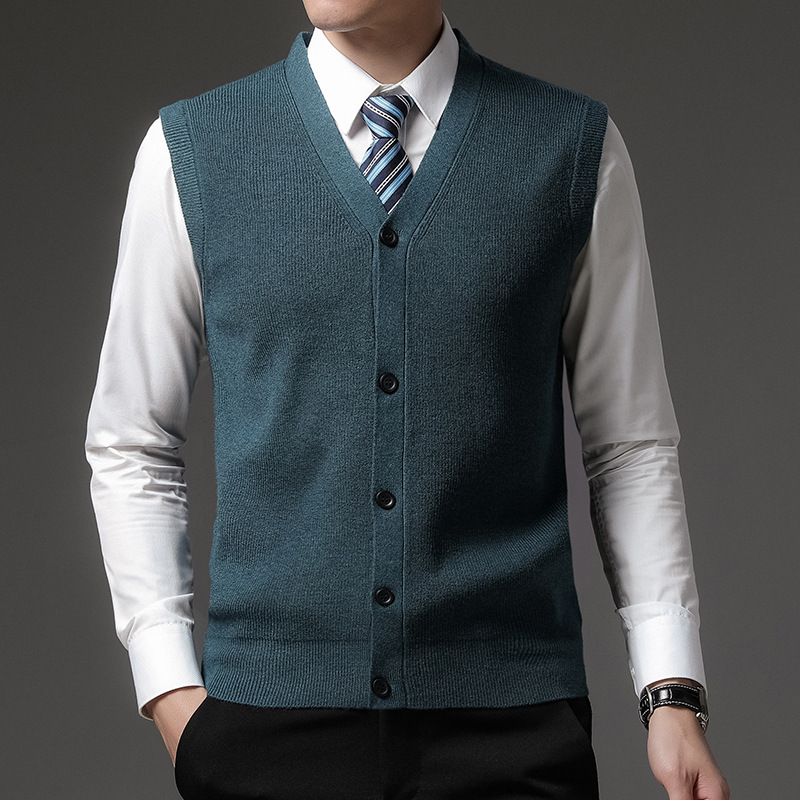 Осенний и зимний шерстяной кардиган жилет ежедневный комбинированный однобортный без воротника сплошной цвет без шапки спот серый жилет