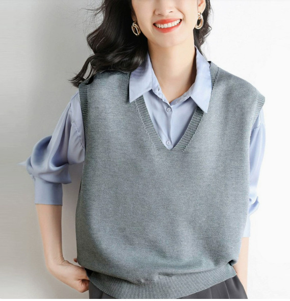 Женский жилет ранней весны, жилет с рубашкой, верхняя одежда 2023, весна и осень, новый свободный студенческий жилет с V-образным вырезом, верхняя одежда
