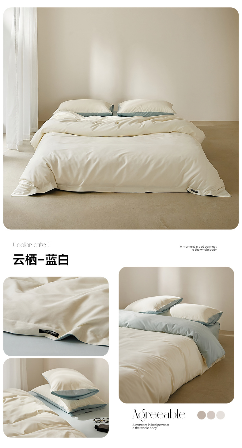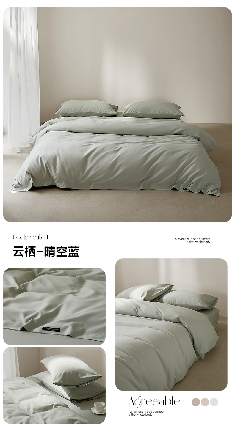 Комплект постельного белья класса А из 100% хлопка, однотонный, из чистого хлопка, включает пододеяльник, простыню, натяжную простыню, комплект из трех или четырех предметов, можно стирать, подходит для всех сезонов.
