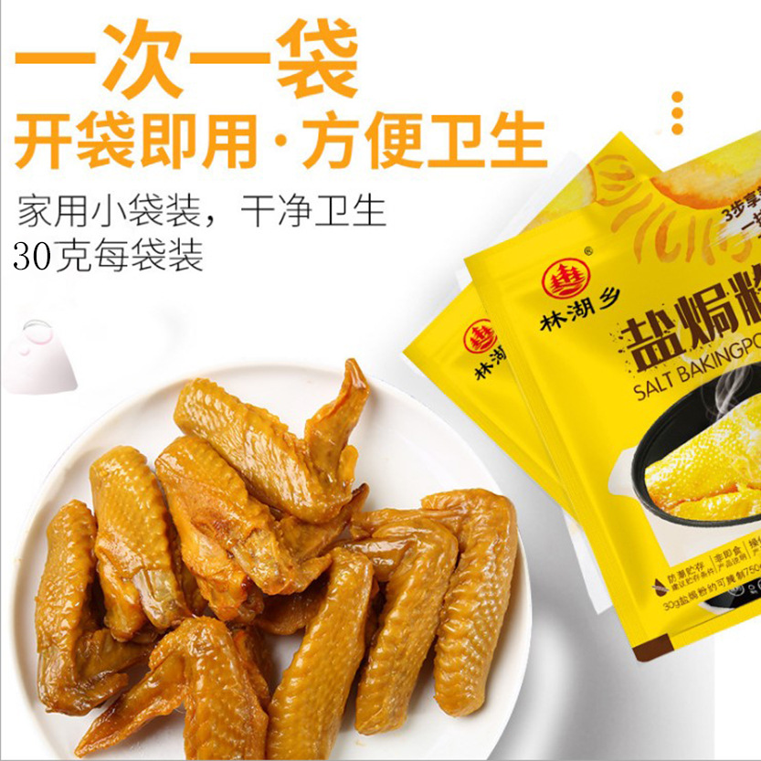 Аутентичный Linhu Township Соленый запеченный Куриный порошок Ингредиенты 30 г Домашняя Гуандун Мейчжоу Хакка Соль Запеченный Куриный Коготь Креветки Краб Имбирь Порошок