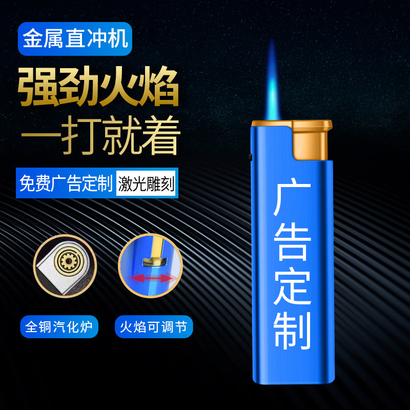 Оптовая металлическая прямая ветрозащитная Зажигалка на заказ одноразовая рекламная зажигалка с лазерной гравировкой логотипа на заказ