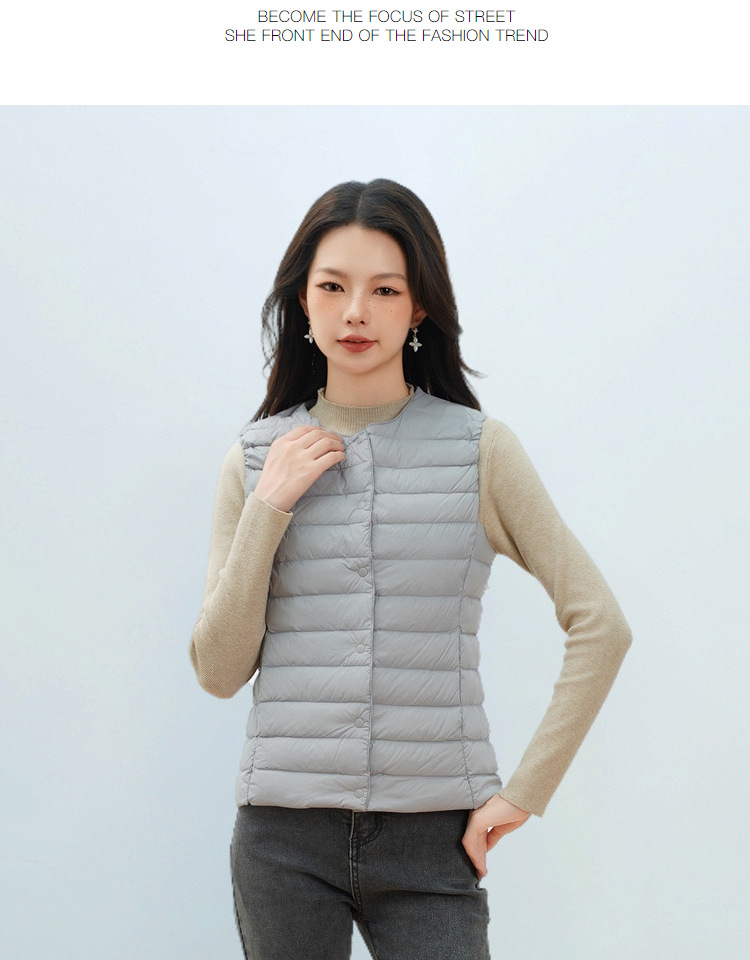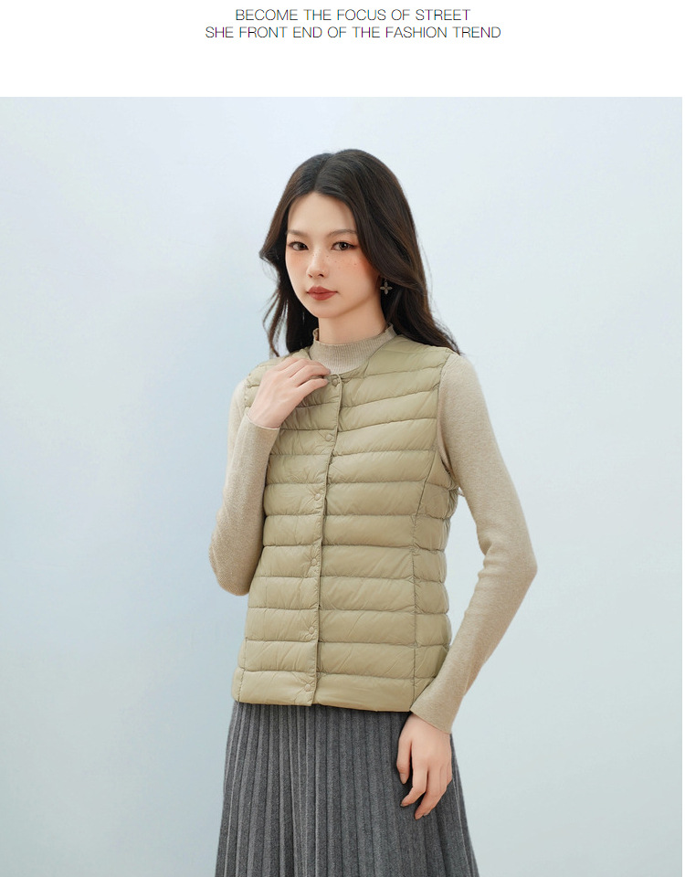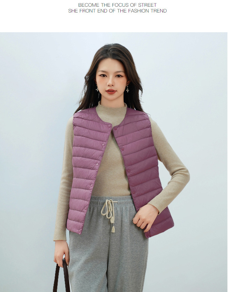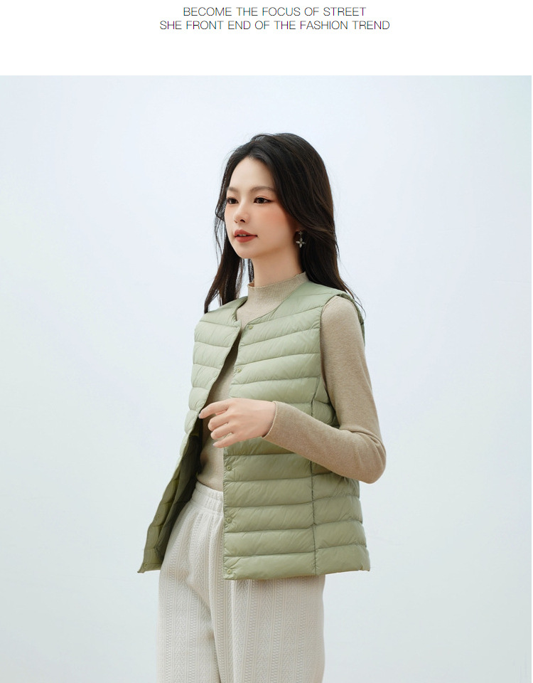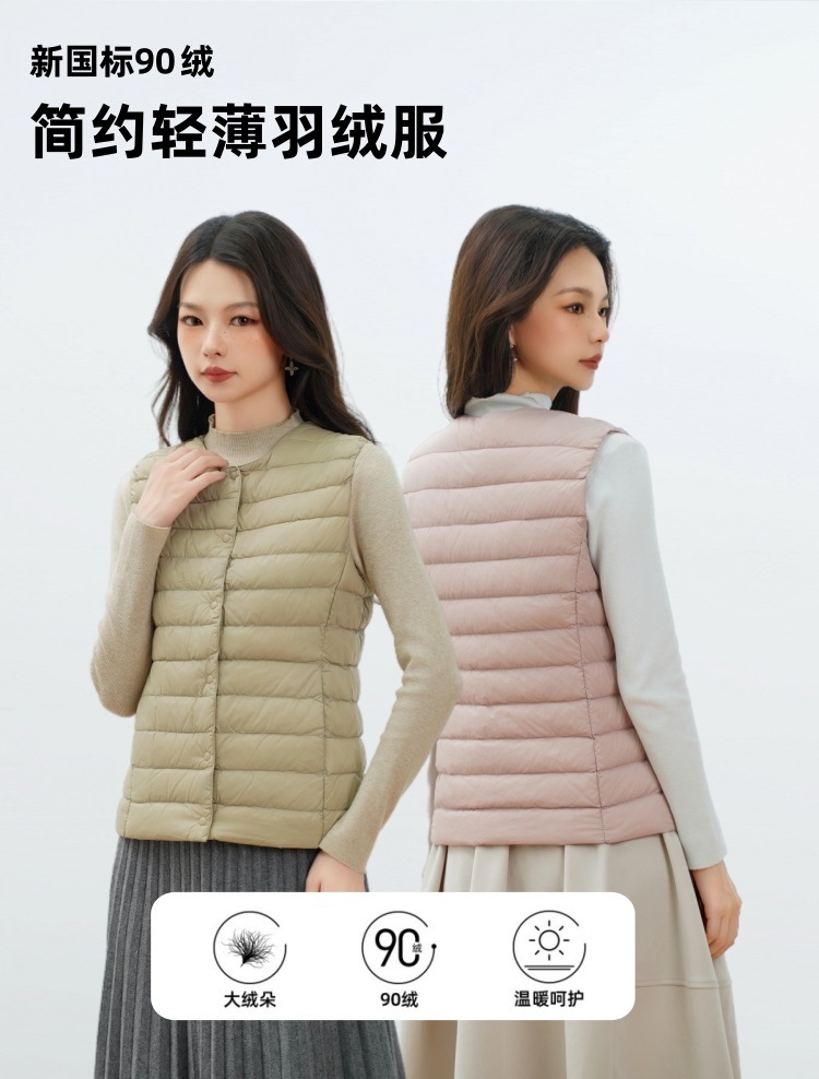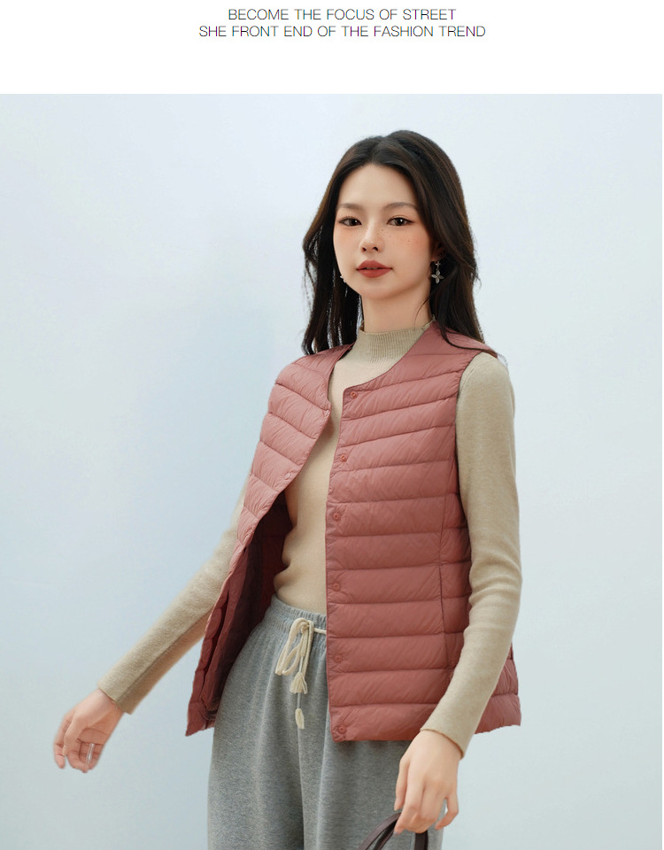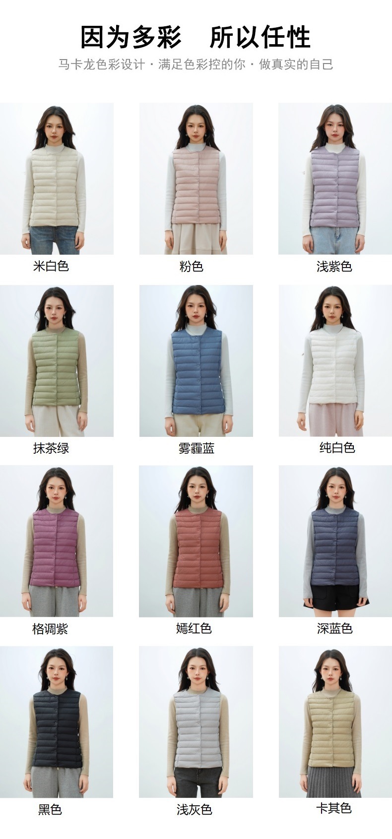 Pinghu Chi новый женский новый национальный стандарт 90 бархат новый женский круглый воротник V-образный вырез легкий пуховик жилет