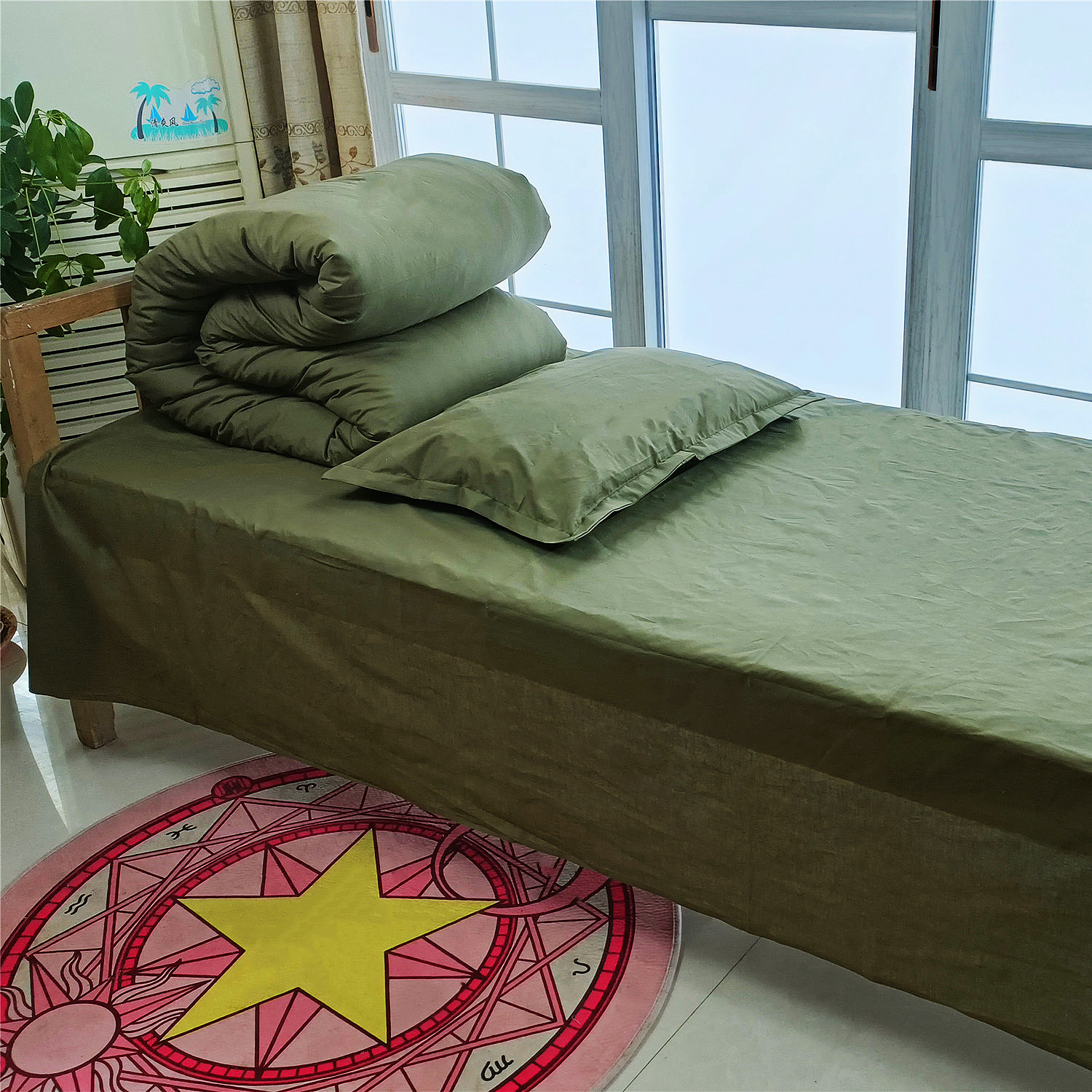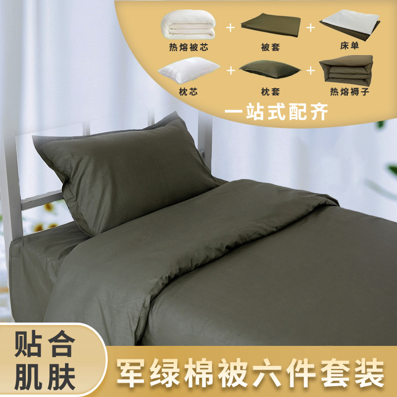 Производитель военного тренировочного хлопкового постельного белья, комплект из шести предметов, военный зеленый цвет, для школьных общежитий, оптом