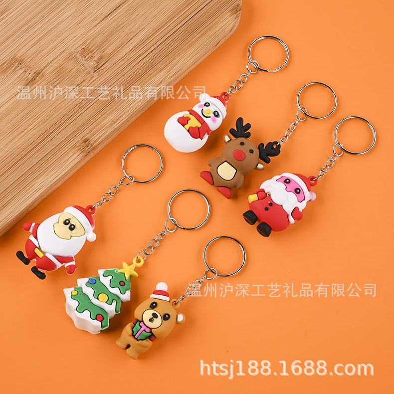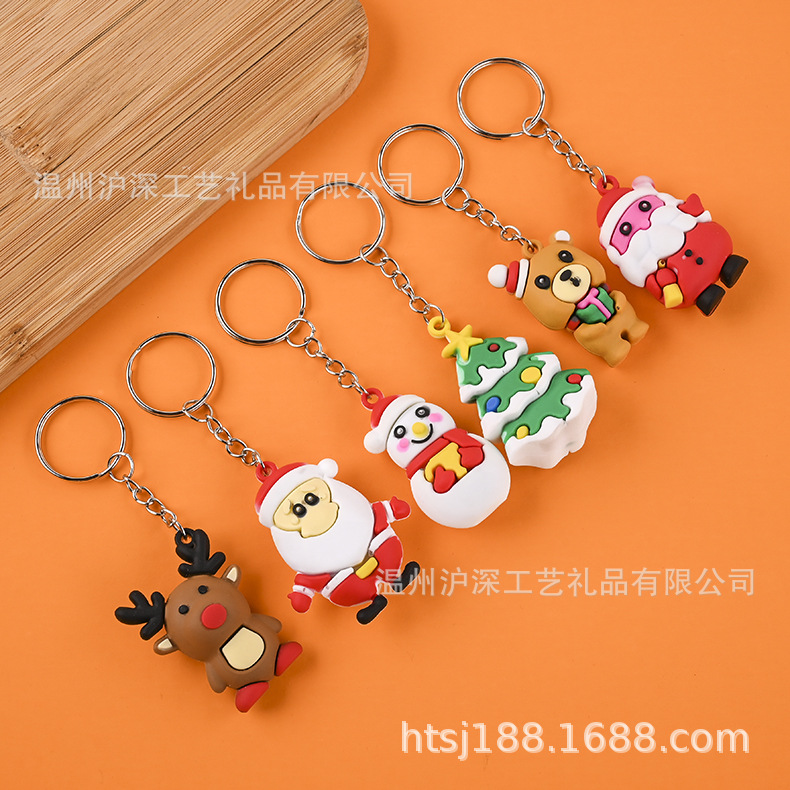 Новый ПВХ мягкая резина трехмерный брелок кулон Рождественский брелок старик Снеговик Лось трехмерная Кукла Оптом