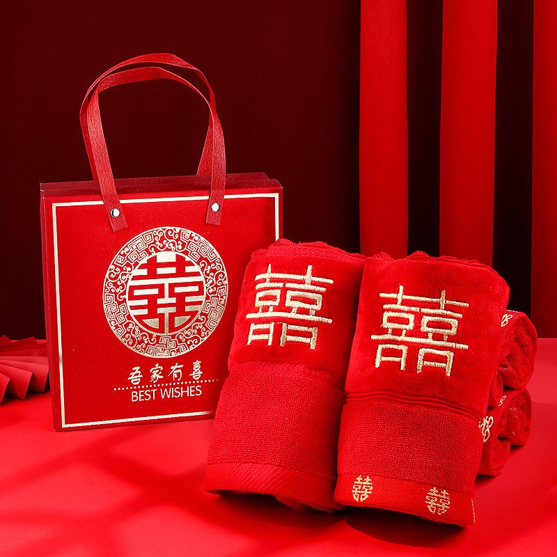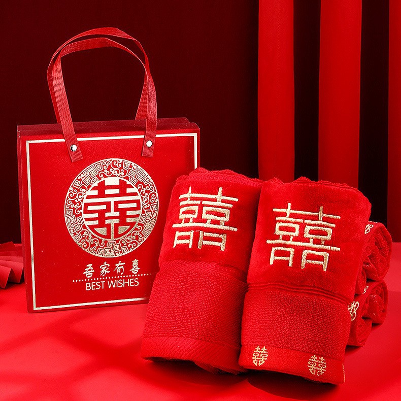 Свадебные принадлежности с персонажем двойного счастья, красная высококачественная вышитая подарочная коробка для пары из чистого хлопка.