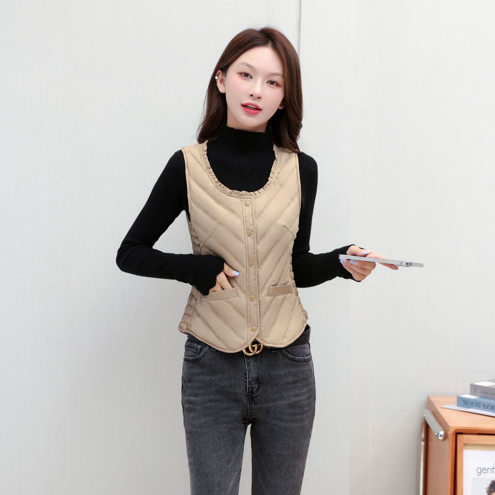 Осенне-зимний легкий пуховик, женский короткий приталенный теплый жилет для мамы, внутренний жилет