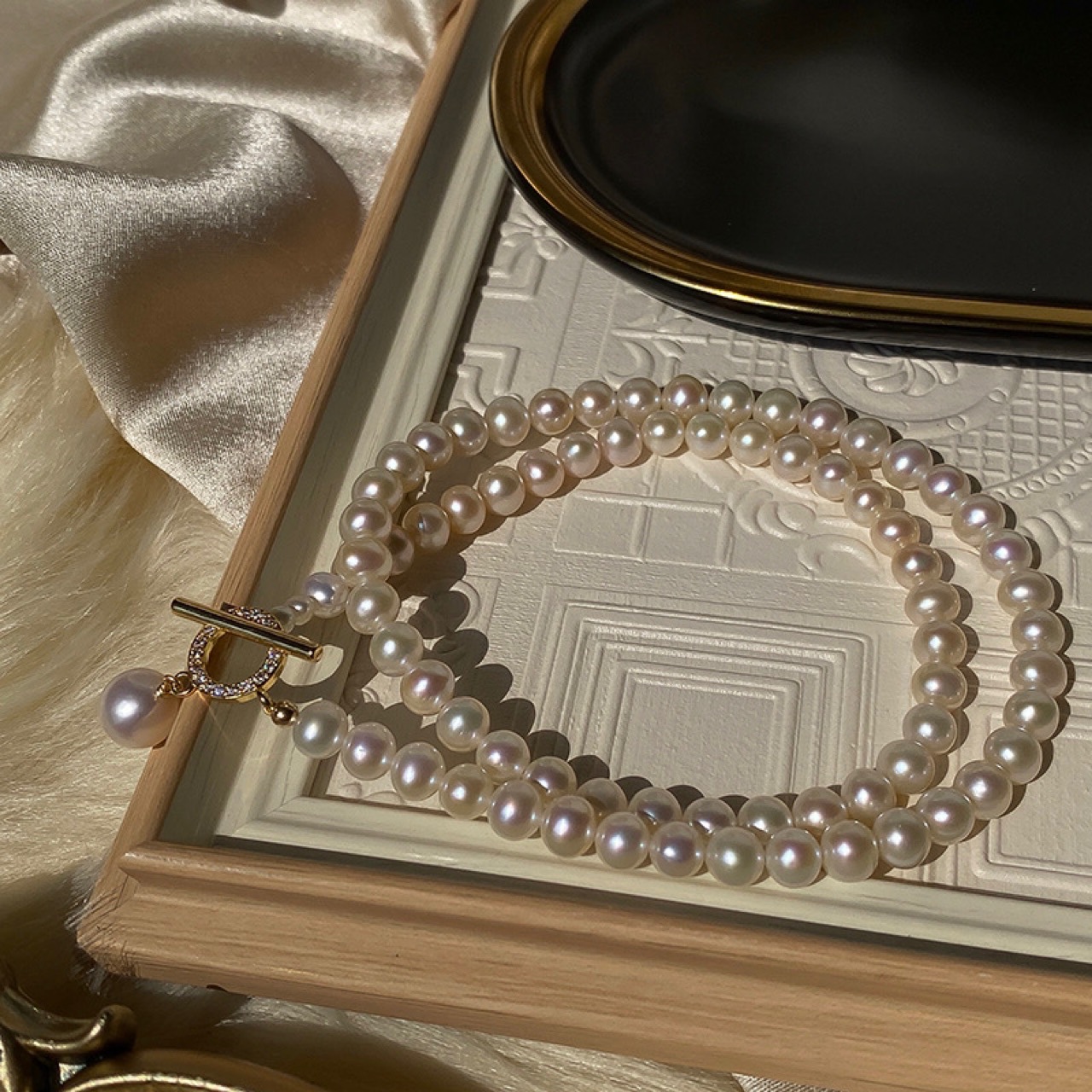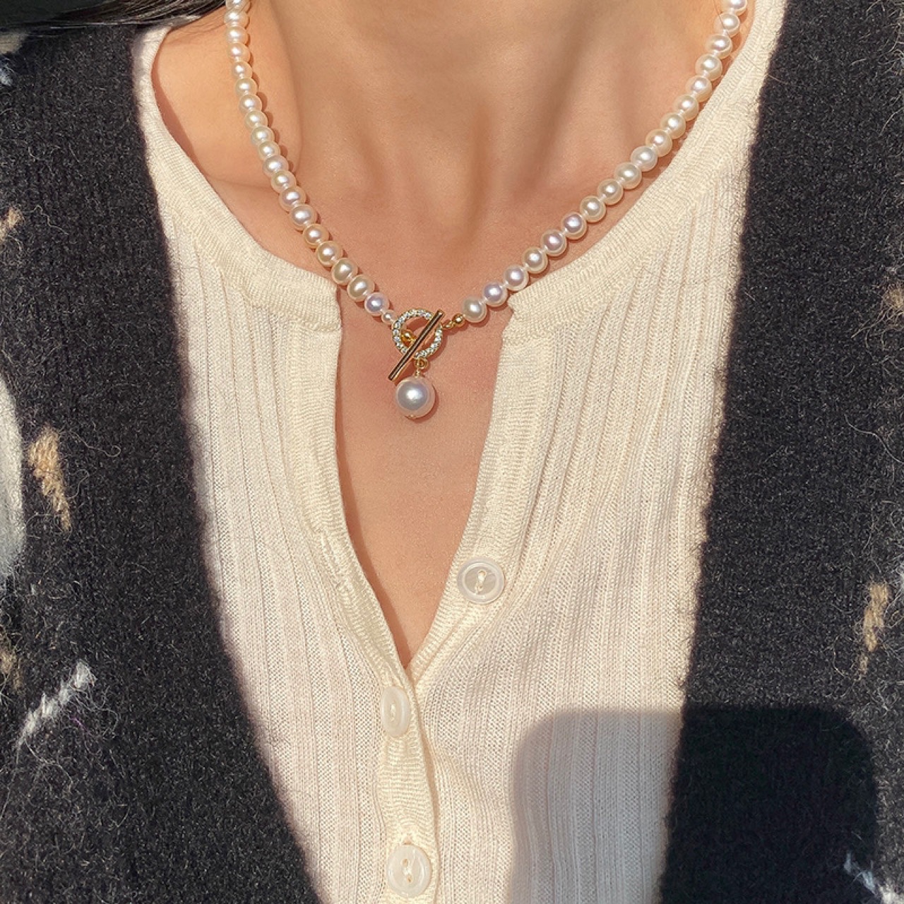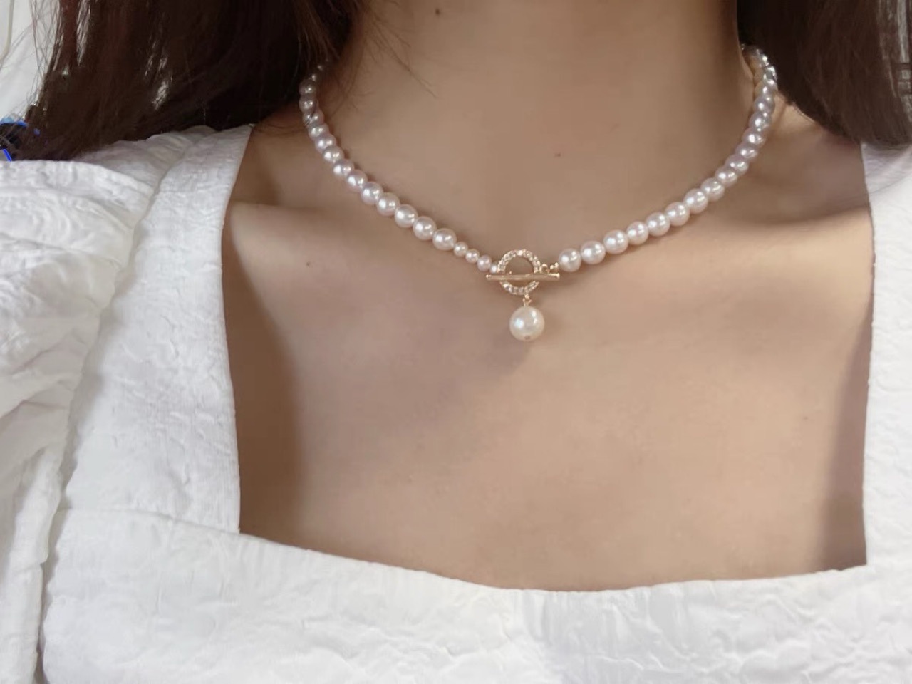 Натуральный легкий пресноводный жемчуг, инкрустированный бриллиантами, ожерелье с пряжкой, легкий роскошный нишевый дизайн, цепочка на ключицу в холодном стиле для женщин