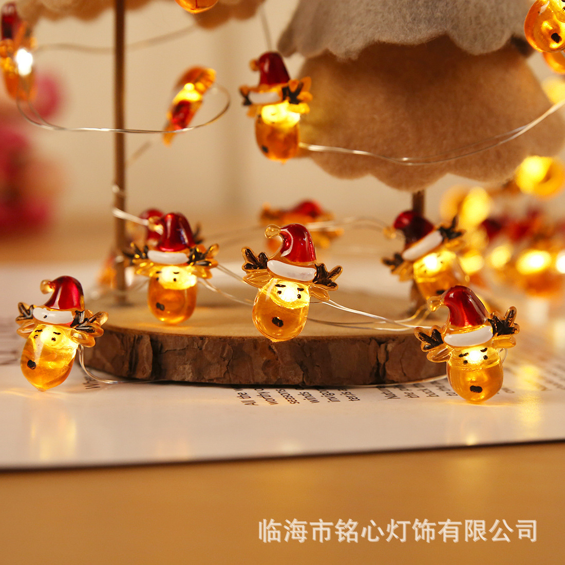 Трансграничные новые светодиодные Рождественские декоративные огни Строка Рождественская черная шляпа снеговик старик голова оленя декоративные огни медная проволока цветные огни