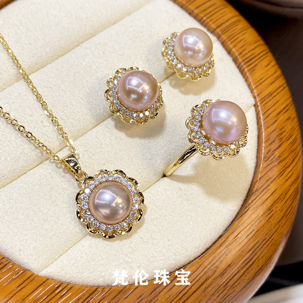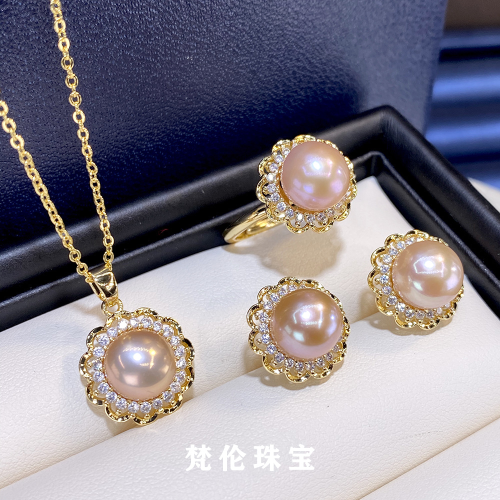 2025 новый комплект из пресноводных жемчужин: колье, браслет, кольцо, серьги (четыре предмета), 8-9 мм, оригинальный цвет, элегантный и свежий дизайн.