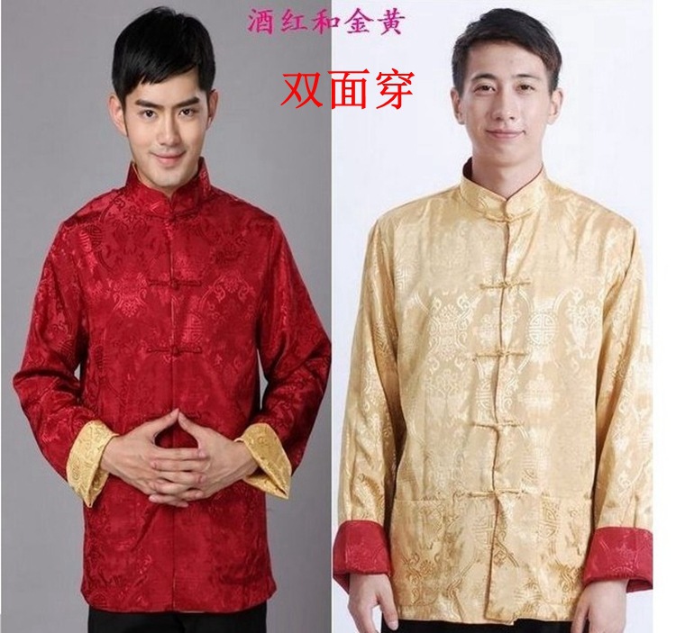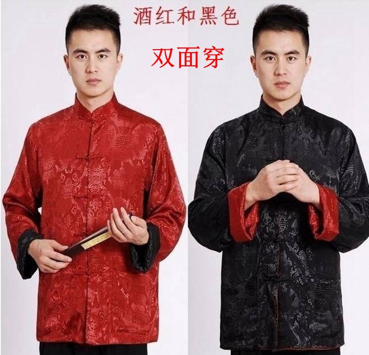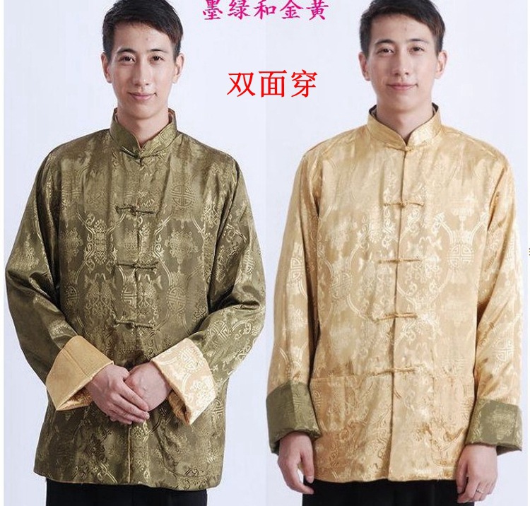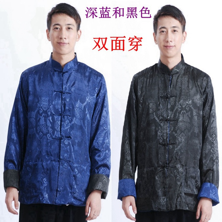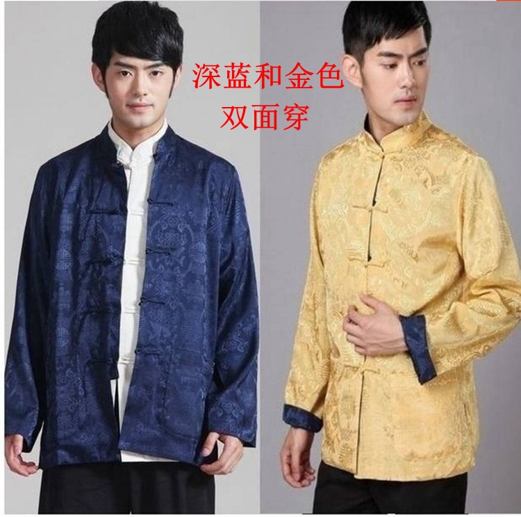 Мужское пальто Винтажная Двусторонняя Праздничная куртка Шелковый костюм для папы среднего возраста, китайская туника, Пальто, Костюм Тан