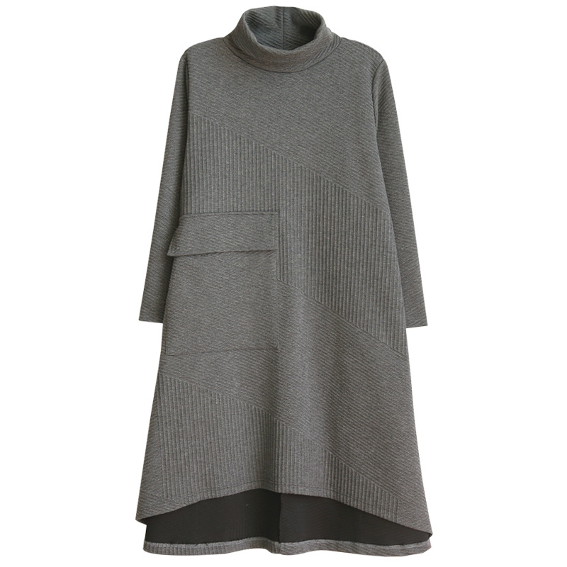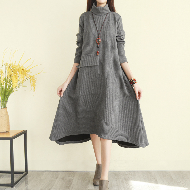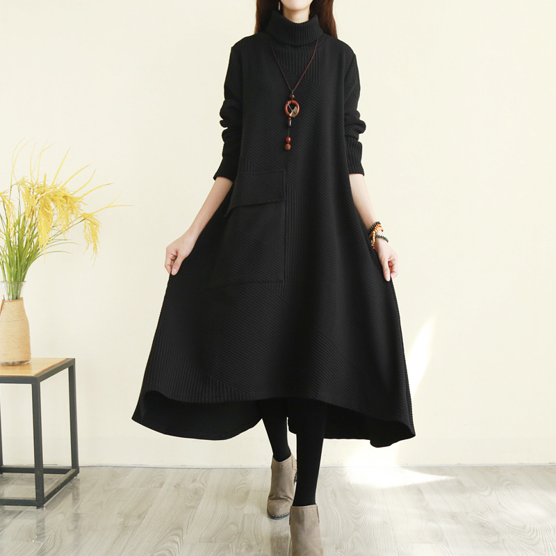 Длинное платье 2025 года в художественном стиле с высоким воротом, асимметричным кроем и утолщением, свободное базовое платье для женщин.