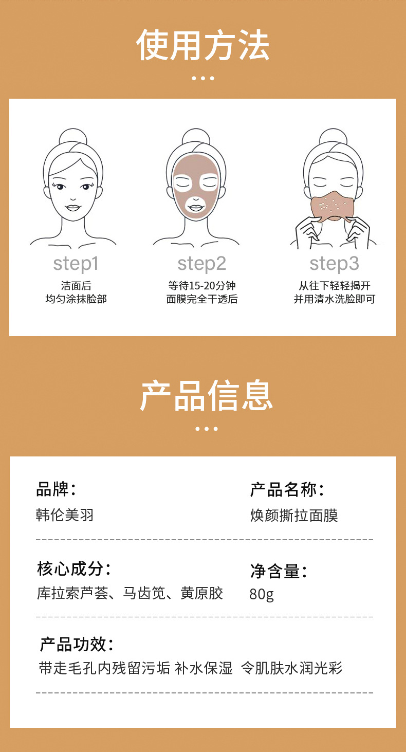 Популярная омолаживающая отшелушивающая маска Han Lun Meiyu, увлажняющая, очищающая поры, удаляющая черные точки, отшелушивающая маска, оптовая продажа средств по уходу за кожей