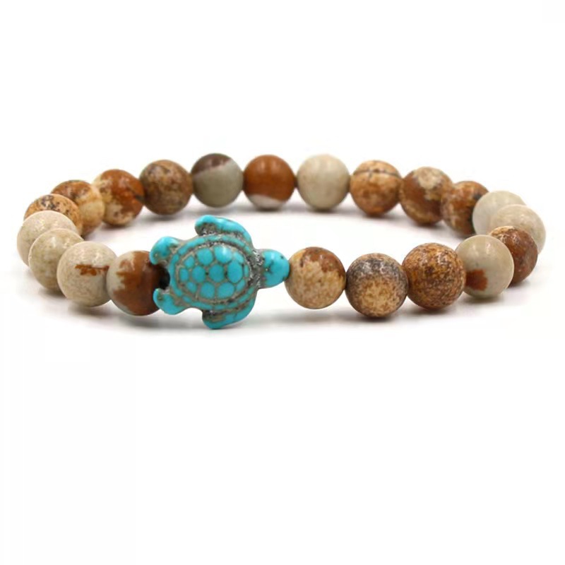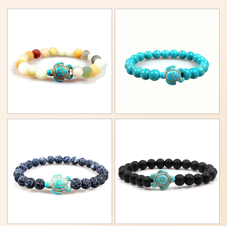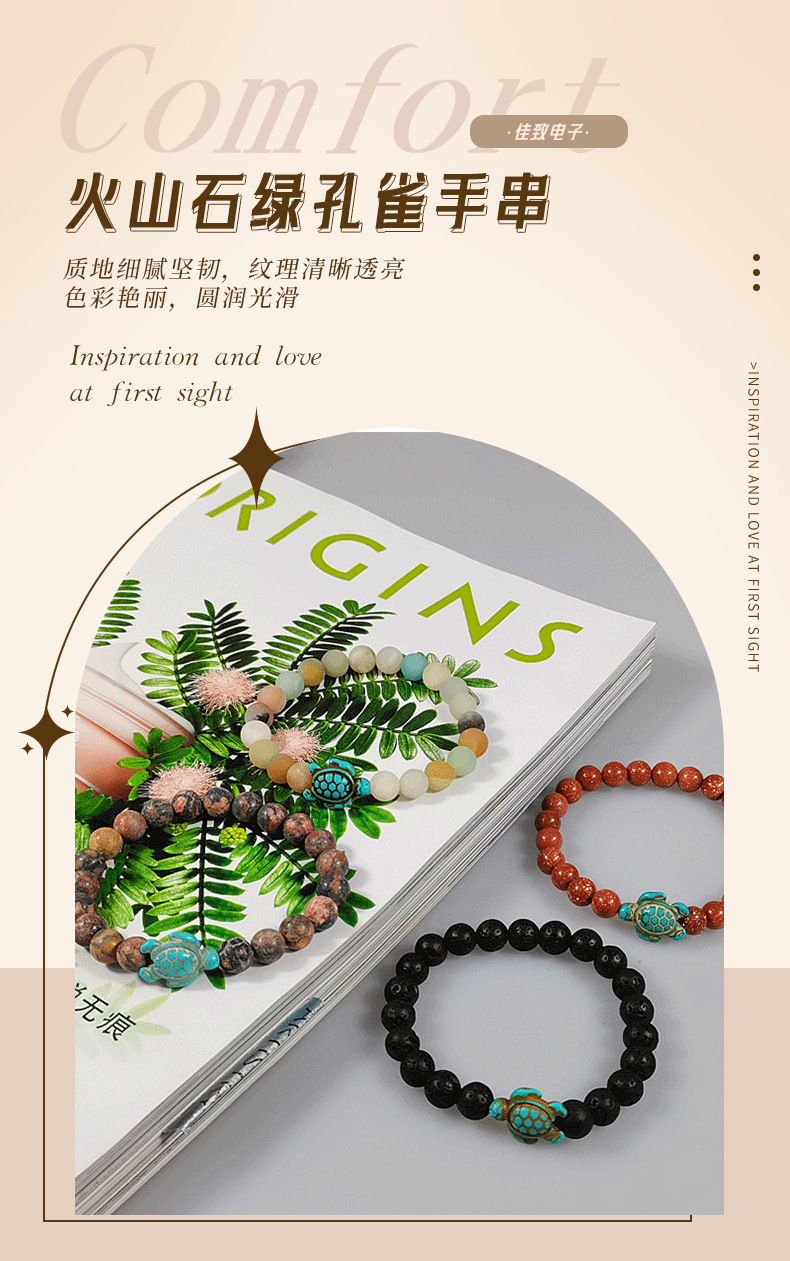 Европа и США Amazon трансграничный вулканический камень зеленый павлин браслет Мода Мужчины и женщины черепаха эластичный Синий Бирюзовый браслет оптом