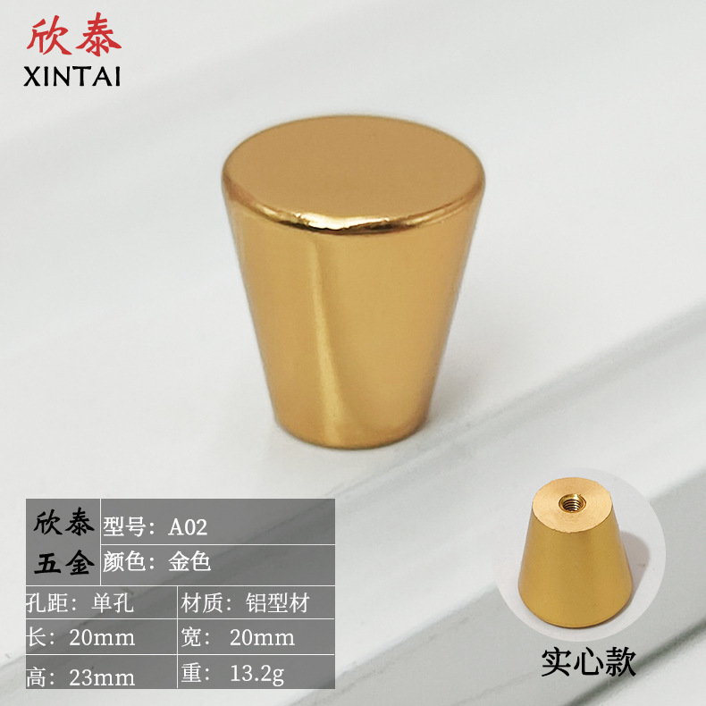 Коническая ручка из алюминиевого сплава Золотая твердая ручка выдвижного ящика с одним отверстием Современная минималистская космическая алюминиевая ручка