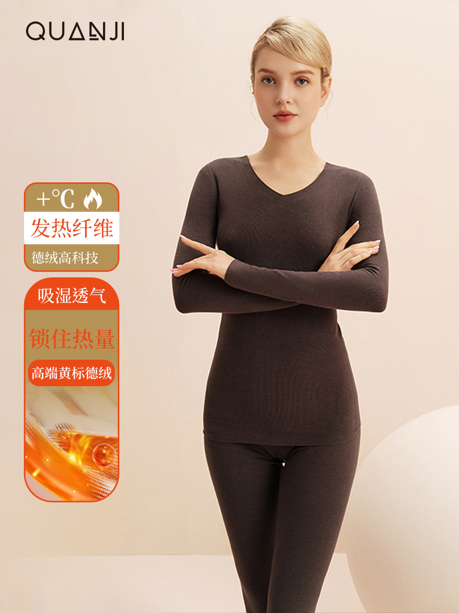 Термобелье DeRong, женское осеннее нижнее белье с гиалуроновой кислотой, осенняя одежда и осенние брюки, зимний матовый костюм с v-образным вырезом и длинными рукавами