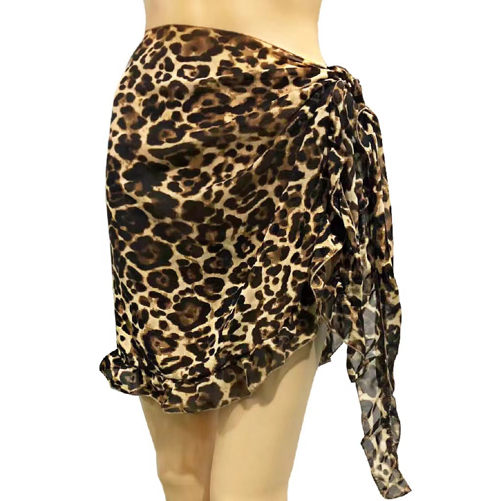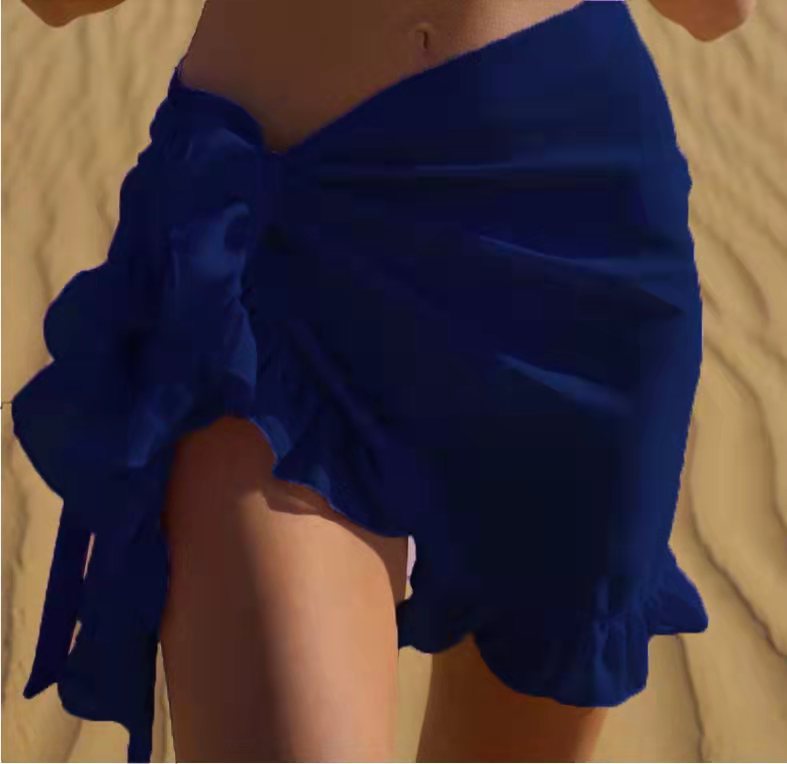 Amazon Летняя короткая юбка AliExpress Европейская и американская шифоновая однотонная Солнцезащитная бикини с краями ушей пляжная юбка блузка женская