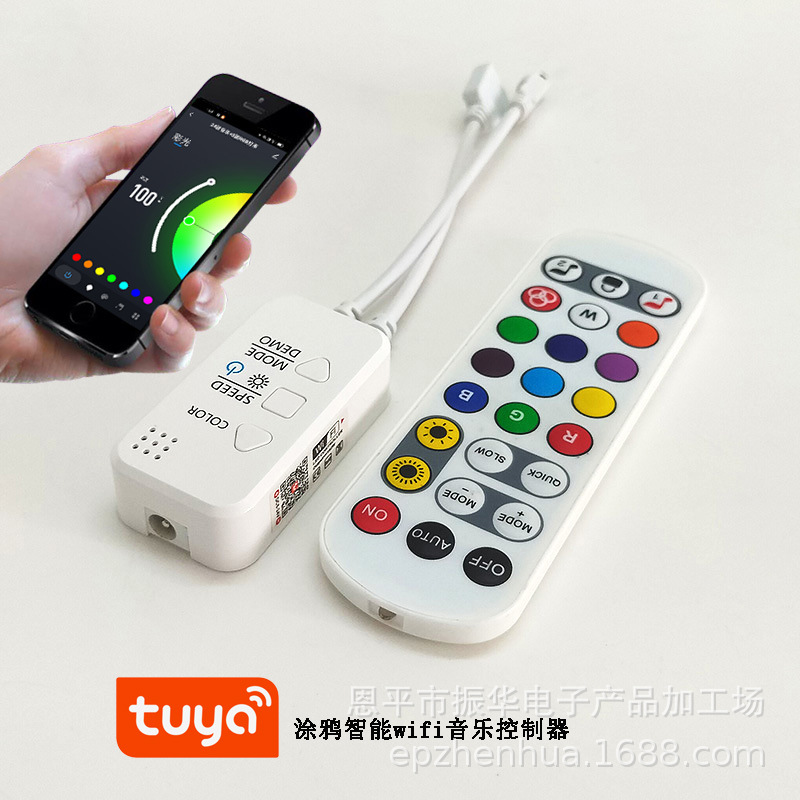 涂鸦智能wifi红外24键音乐控制器是一款采用新款wifi无线智能遥控LED控制器,既可用智能手机APP控制灯光的模式,也可以用红外24键遥控器来控制改变灯带的静态颜色和动态模式,调节灯带亮度。WIFI RGB控制器广泛运用于酒店、酒吧、KTC、家庭等。本产品可多设备智能联动,可使用亚马逊Alexa和谷歌助理(Google Assistant),小度,天猫精灵智能语音控制。控制器自带麦克风,音乐模式时灯光可跟音乐节奏变化。