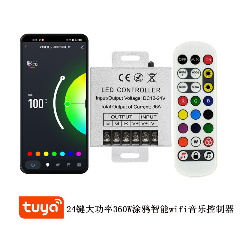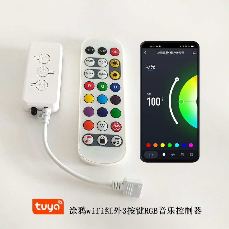 涂鸦智能wifi双模音乐控制器24键遥控led灯带rgb按键调光控制器