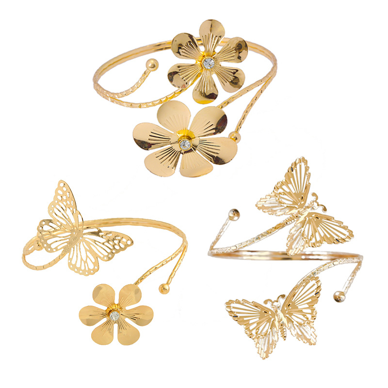 Заводская прямая продажа трансграничная мода новая бабочка браслет преувеличение металлический цветок браслет с бриллиантом отверстие браслет