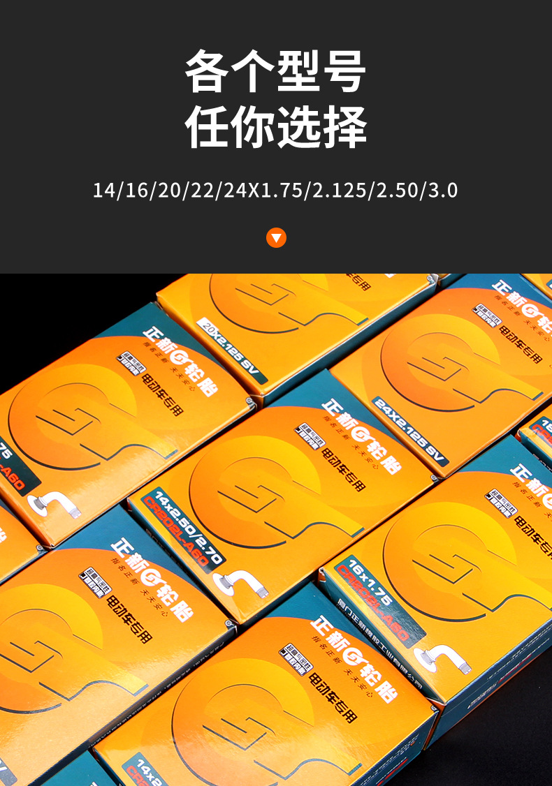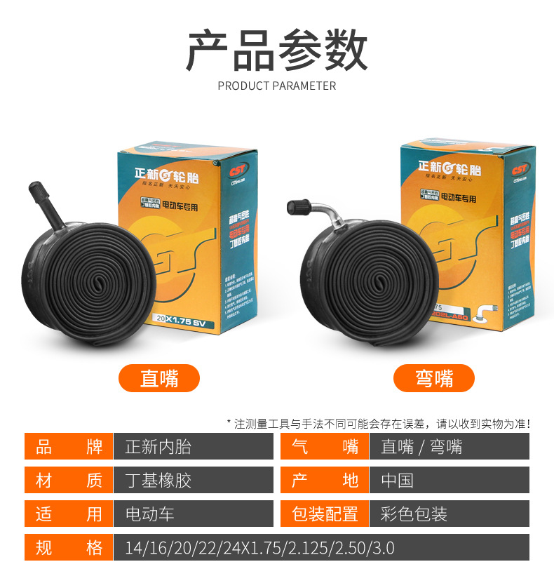 正新电动车内胎丁基胶12/14/16/18/20/22/24X1.75/2.125/2.50弯嘴
