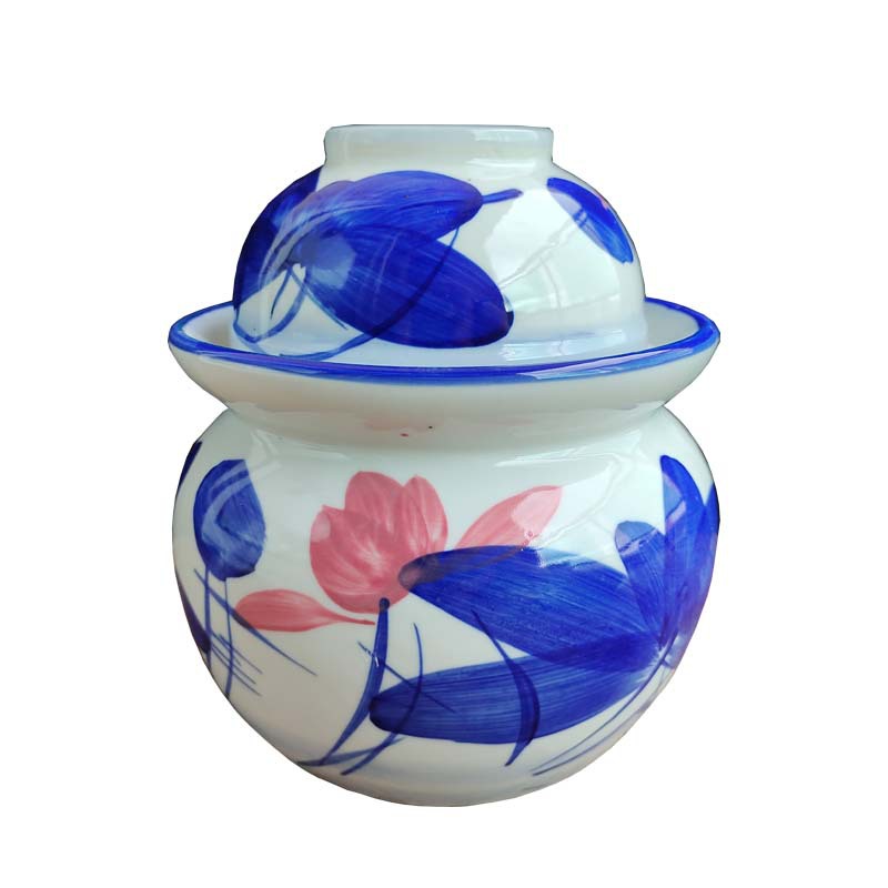 产品名称:高温青花瓷手绘泡菜坛食品包装罐