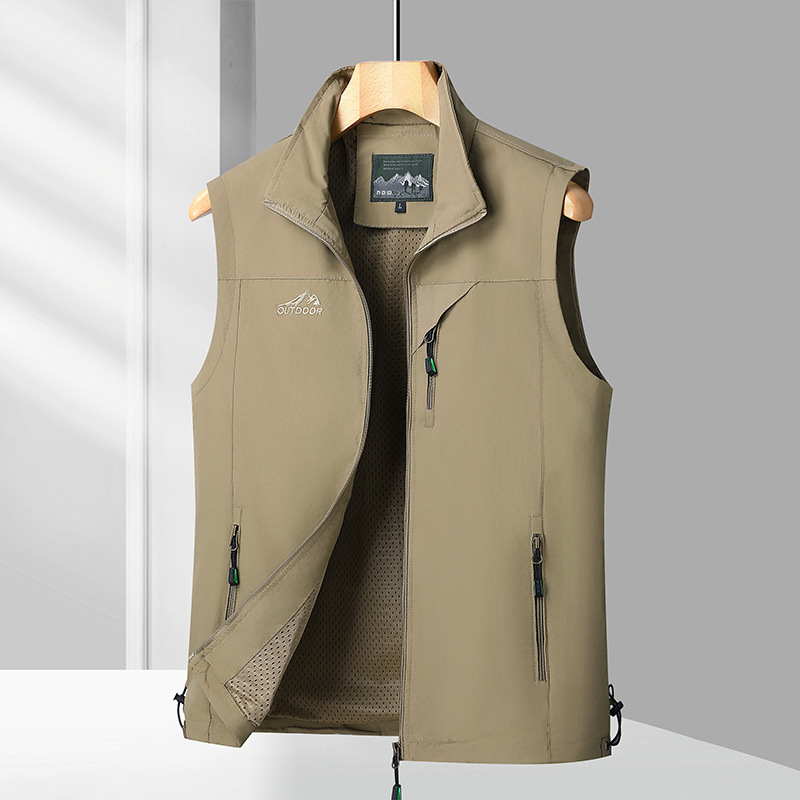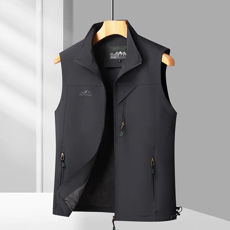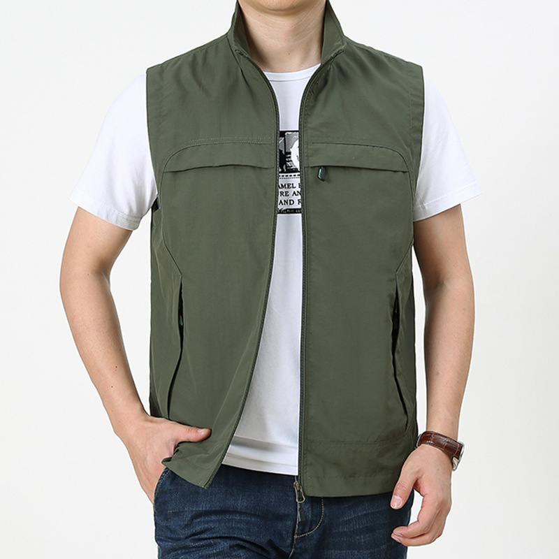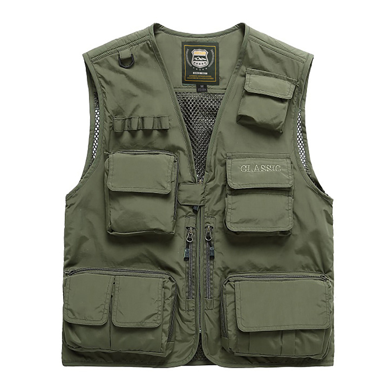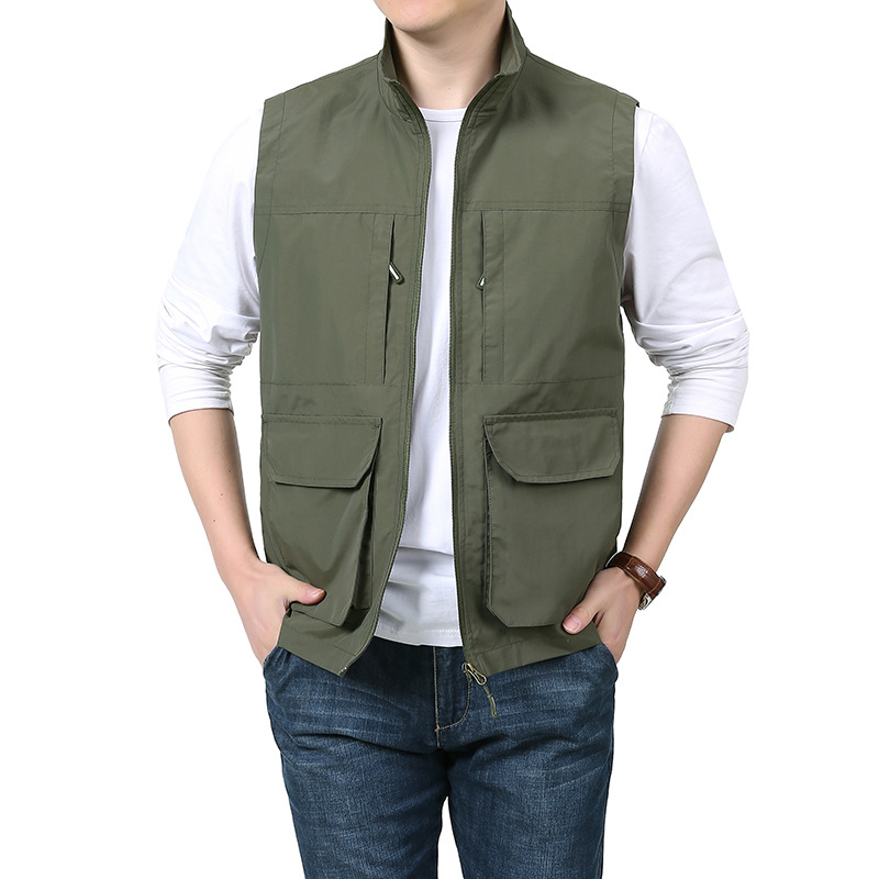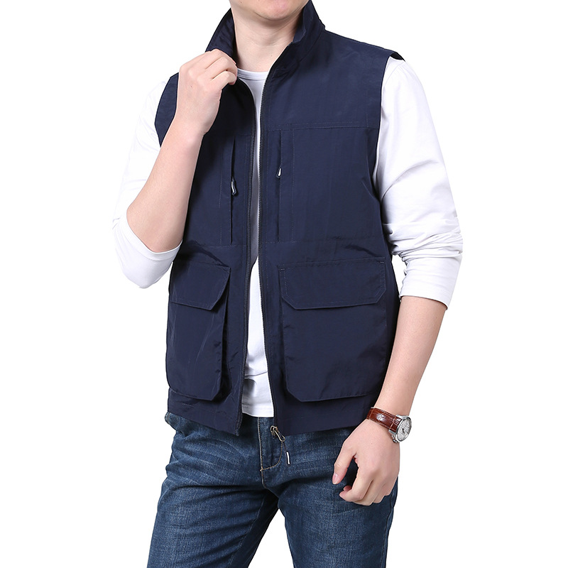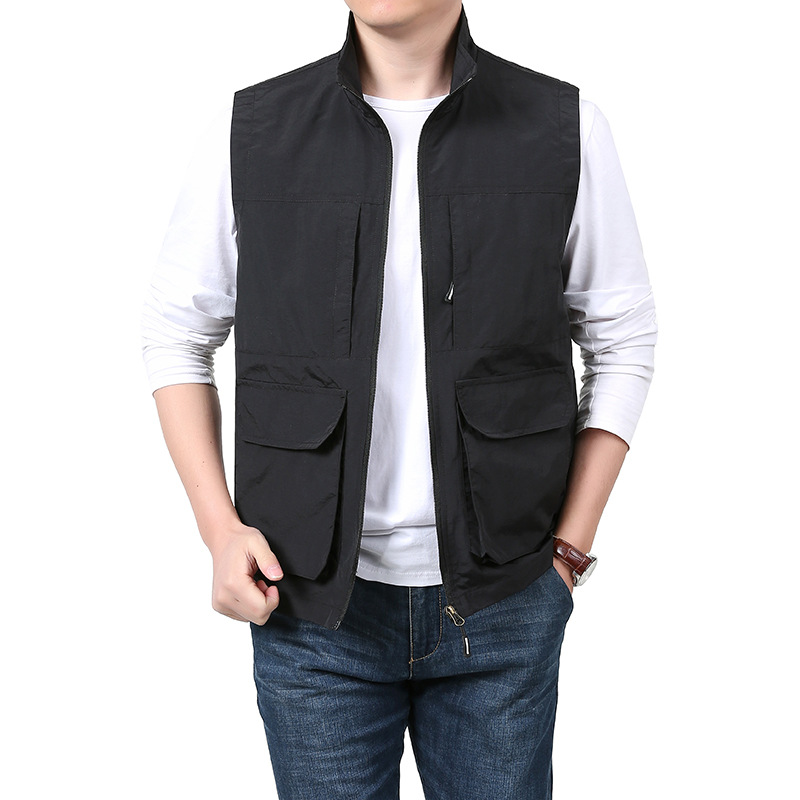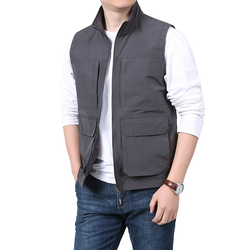 Осенний логотип для печати Жилет с несколькими карманами Мужской уличный жилет с несколькими карманами для рыбалки Рекламный жилет больших размеров Тонкий