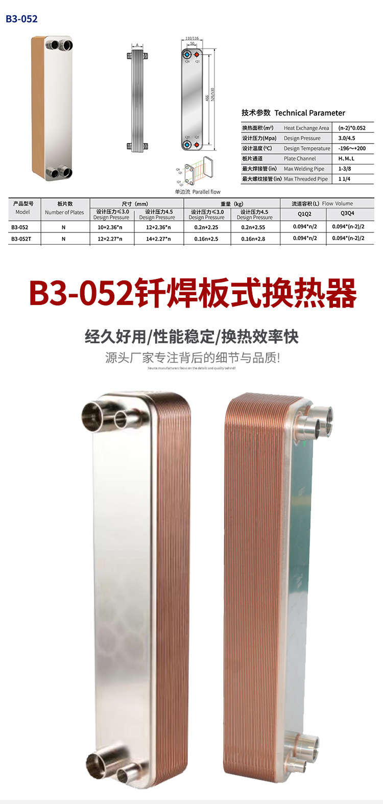 Производитель поставляет интеллектуальный пластинчатый теплообменник B3-052 из нержавеющей стали с регулируемой температурой, паровой теплообменник, который может использоваться в различных областях.