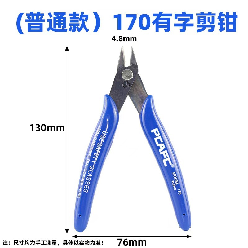 特别的适用于剪电线、电子脚、修边塑料件产品、剪小金属丝等。用于电子行业的修理,首饰加工,模型制作以及钓鱼等。