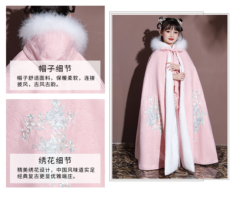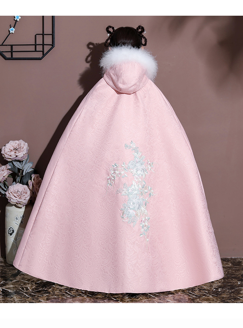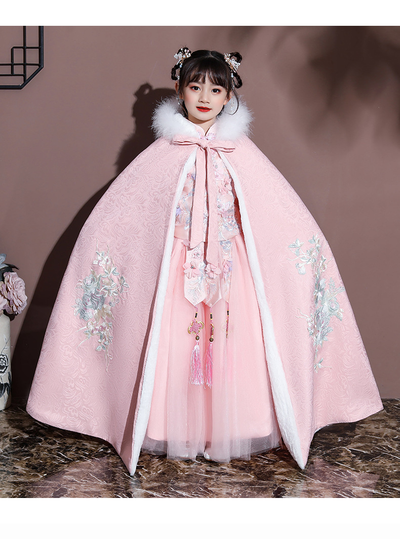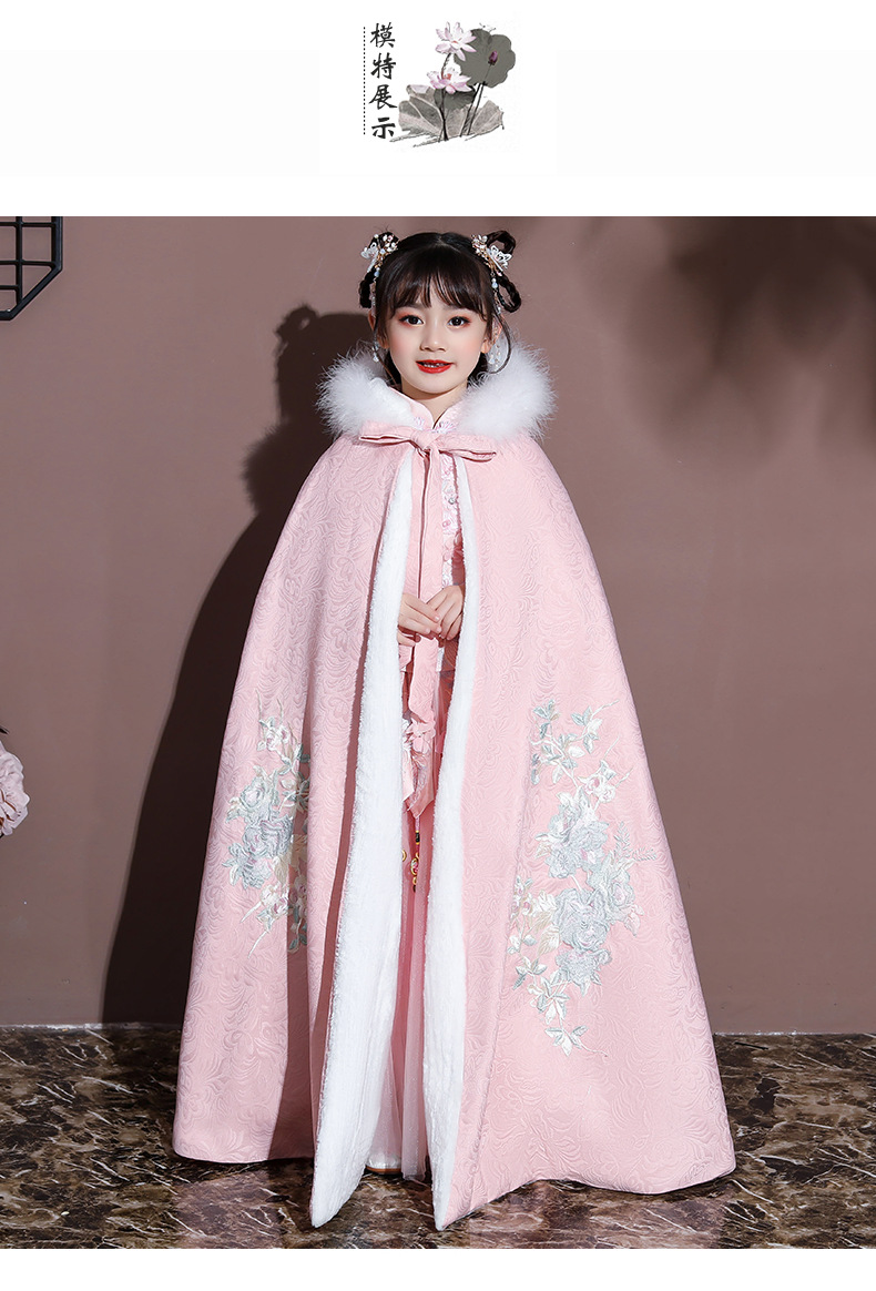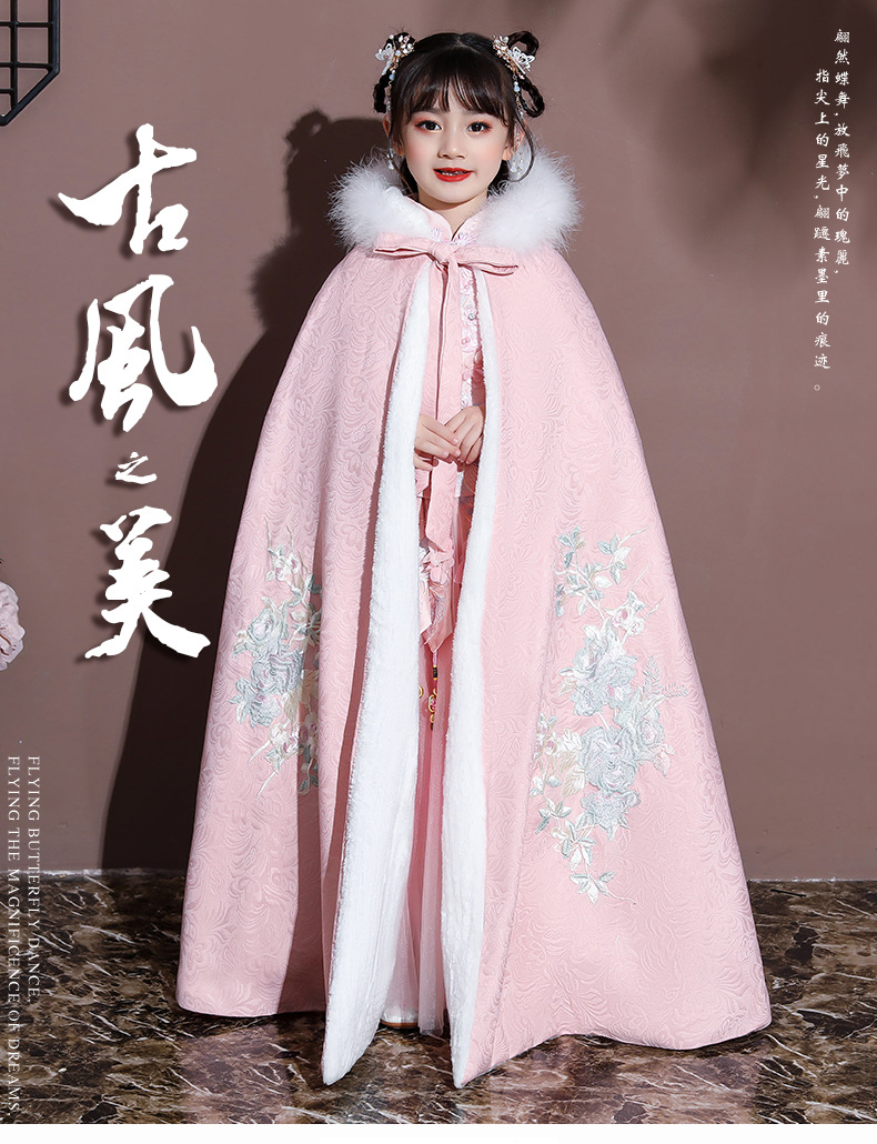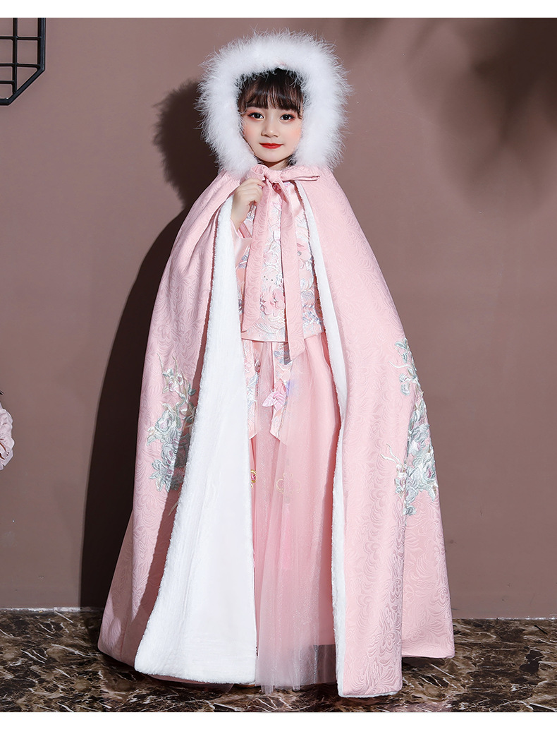 Плащ для девочек, меховый воротник, бархат, толстый